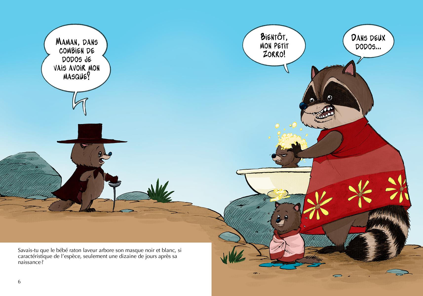 Saviez-vous qu'avec ses pattes avant, le raton laveur peut saisir de petits objets, tourner le bouton d'une porte et même décapsuler une bouteille d’eau ? Que le raton laveur grimpe aux arbres et peut passer d'une branche à l'autre avec une remarquable agilité ? Que le bébé raton laveur arbore son masque noir et blanc seulement une dizaine de jours après sa naissance ?