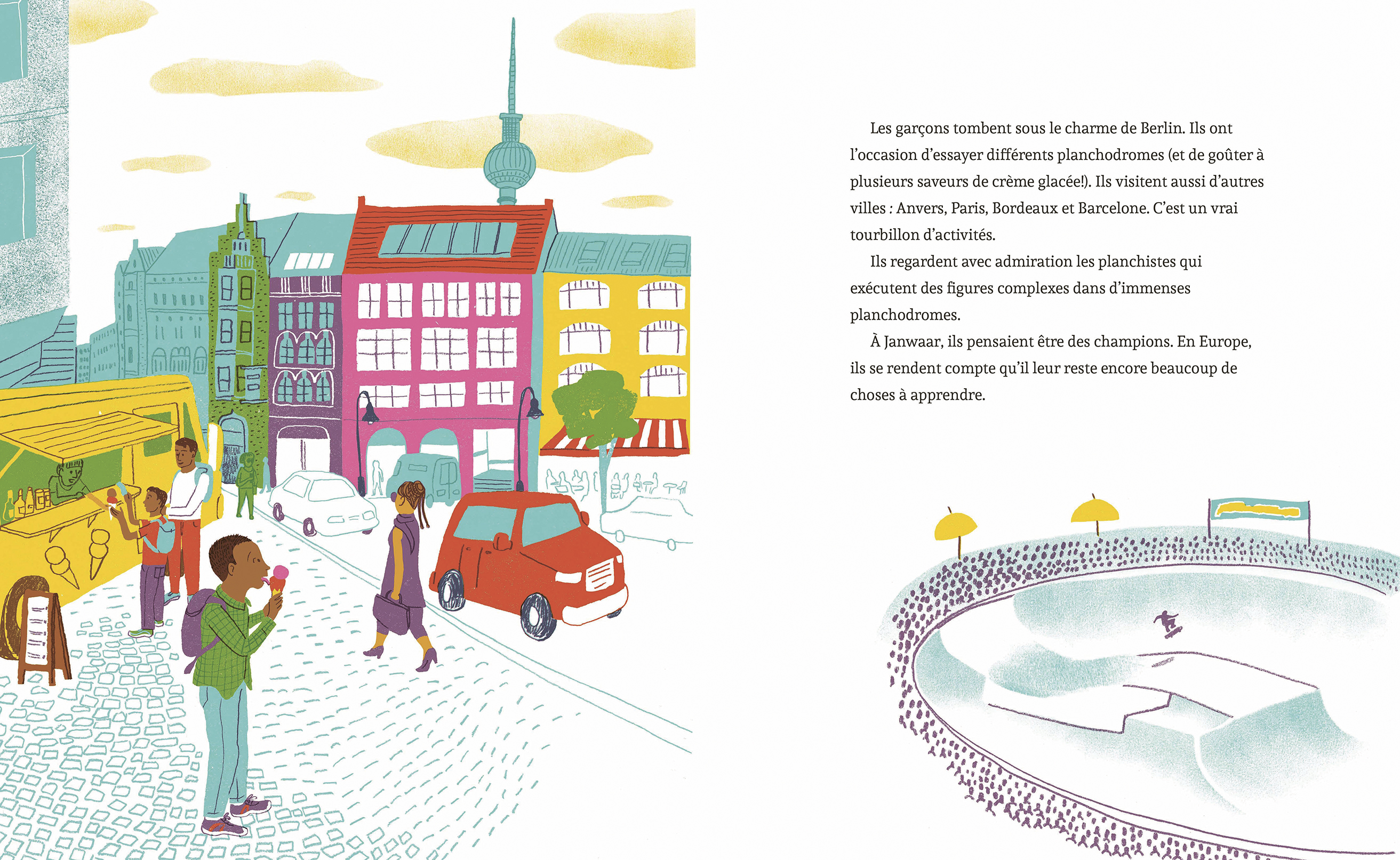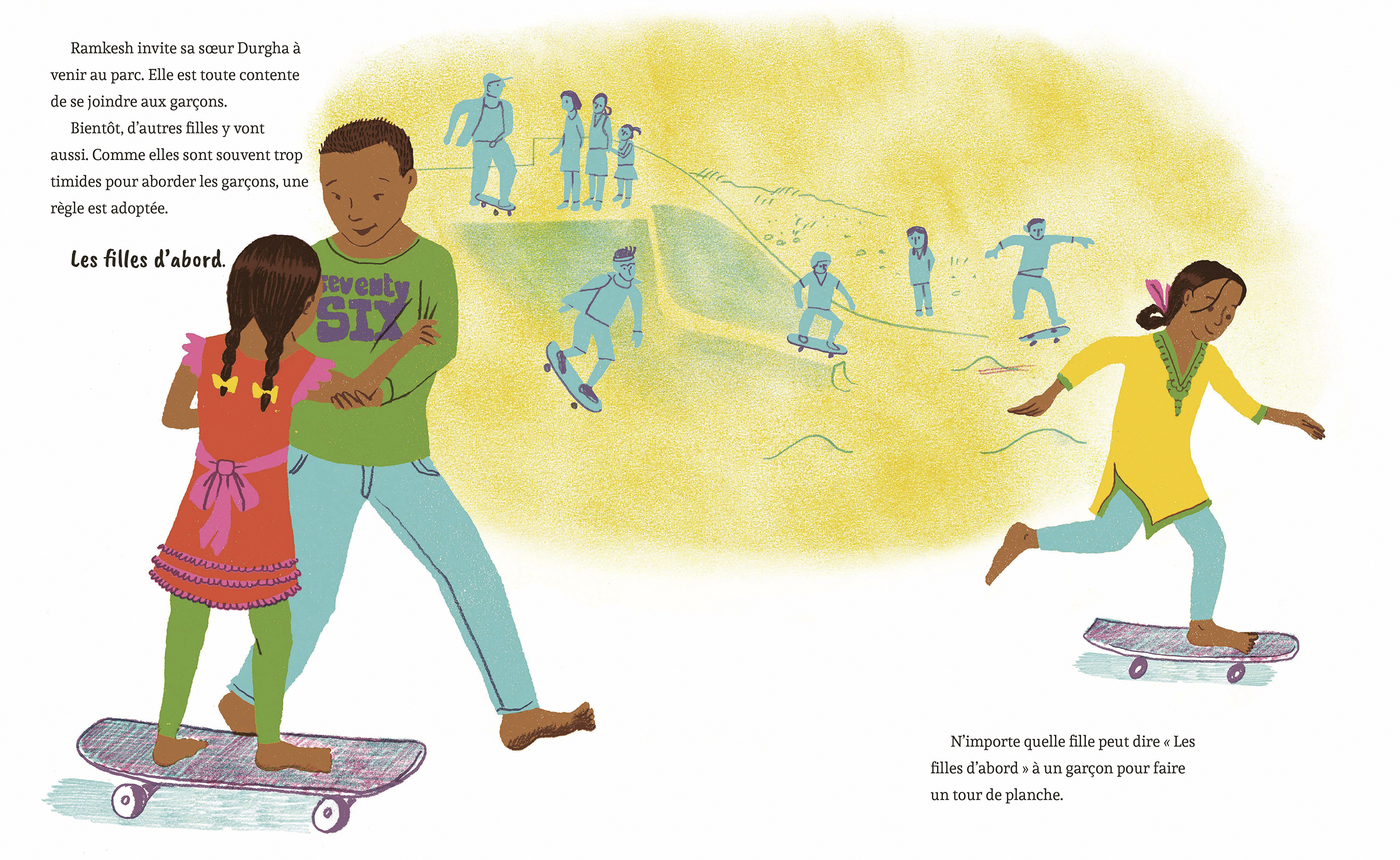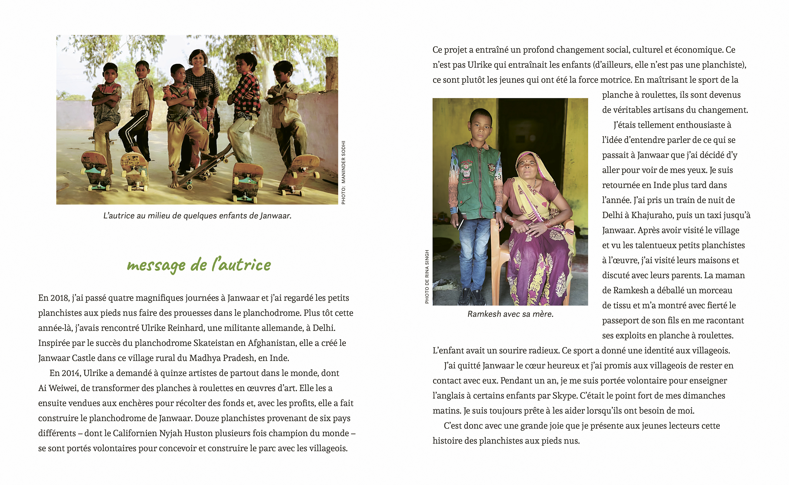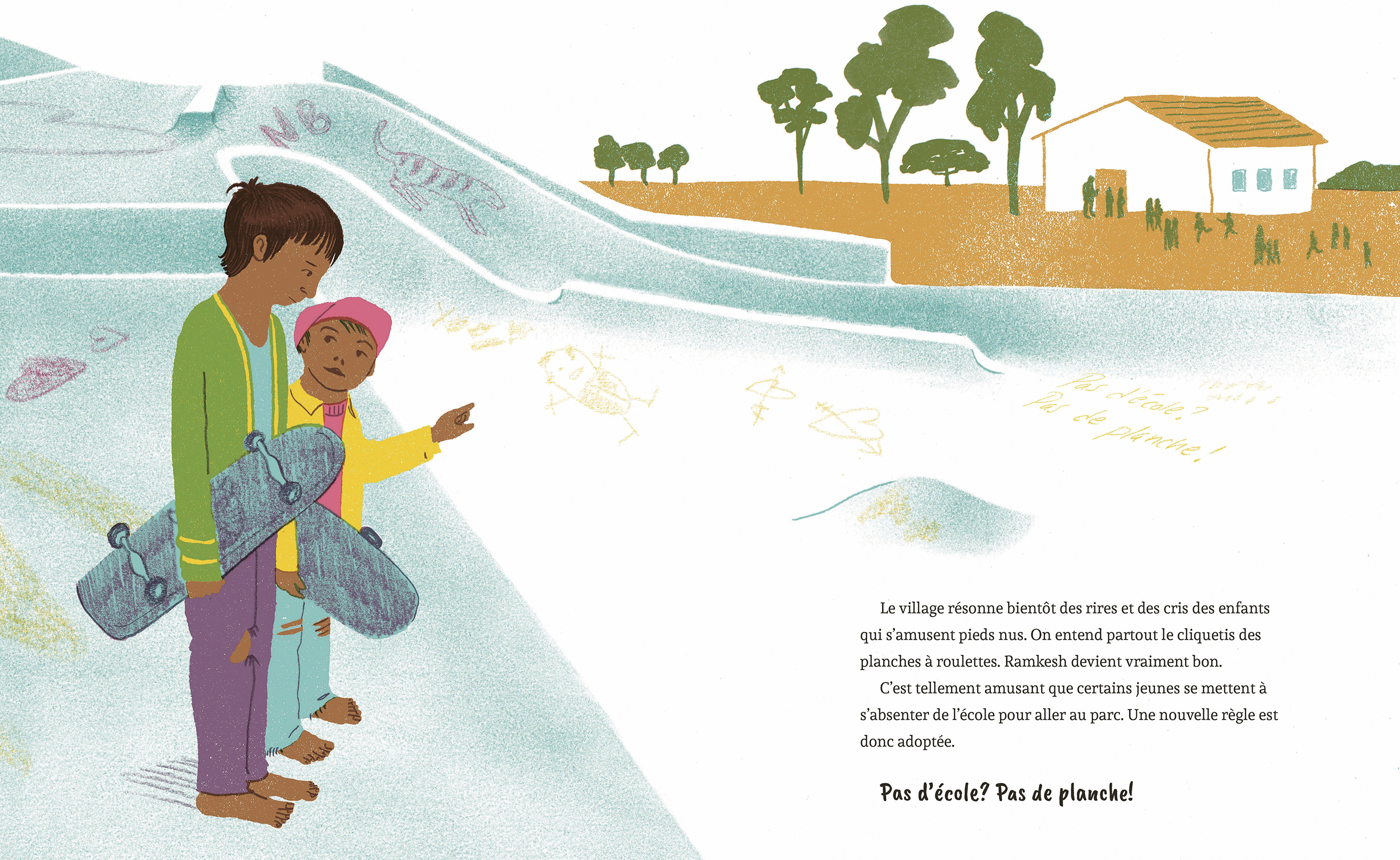 Ramkesh ignore ce que ce sera. Il n’y a que des rampes et des buttes. Une fois la structure terminée, il voit des enfants s’y élancer, debout sur d’étranges planches munies de roulettes. On l’invite à essayer et il devient accro. Il s’entraîne à faire des figures sur sa planche à roulettes. Au début, il n’y a que des garçons, mais Ramkesh propose à sa sœur et à d’autres filles à se joindre à lui. Le petit village acquiert une réputation de haut lieu de la planche à roulettes. Les gens affluent de partout dans le monde pour le visiter et enseigner des figures aux enfants. Ramkesh et ses amis sont même invités à voyager en Europe. Mais le plus important, c’est qu’ils reviennent chez eux pour raconter ce qu’ils ont vécu et insufflent un nouveau sentiment de joie et d’unité chez les villageois, ce qui leur montre que les choses peuvent changer à l’avenir.