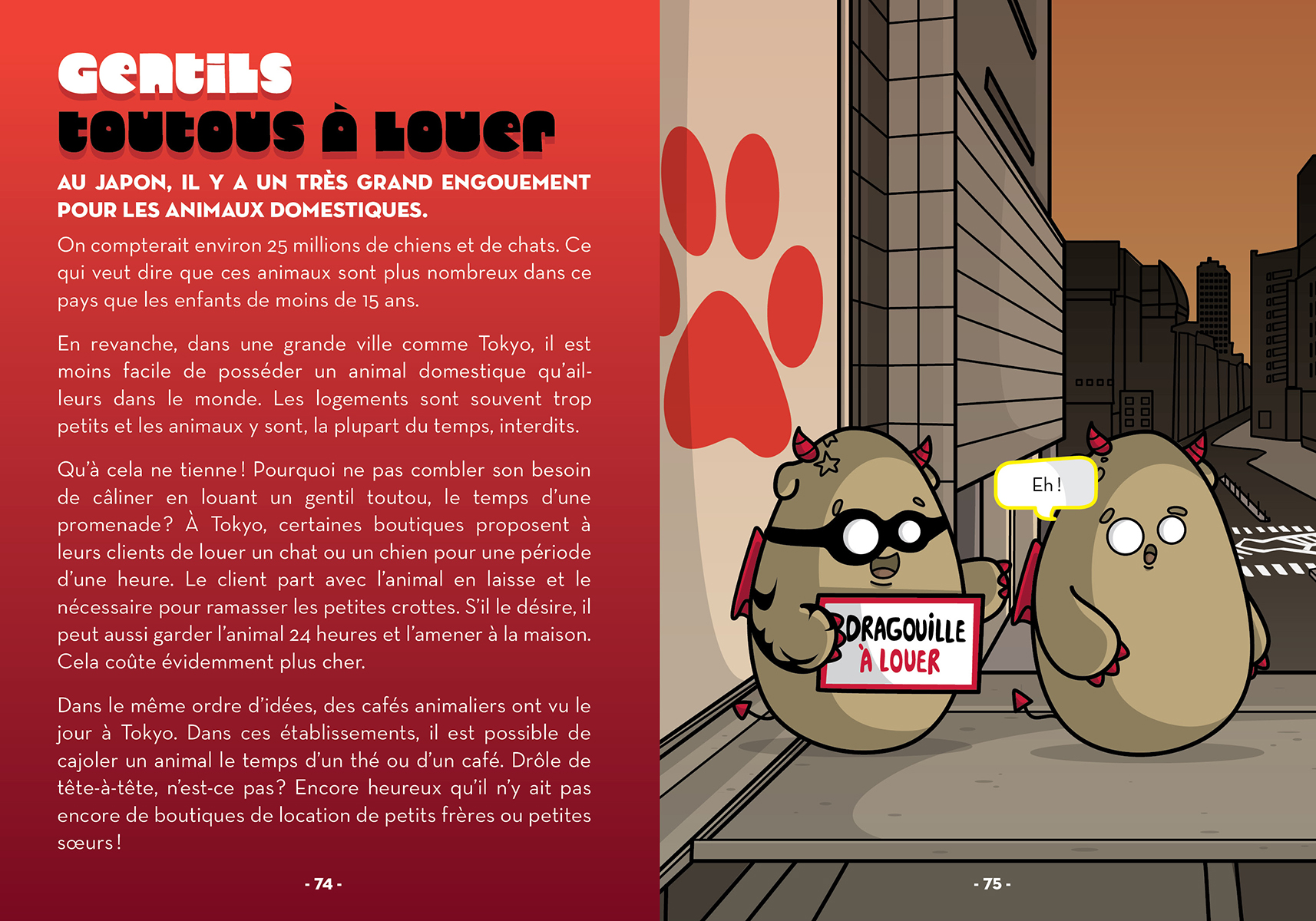 Les jumeaux, la geek, la branchée, la rebelle, le cuistot et l’artiste explorent la ville de Tokyo, au Japon. Les jeunes découvriront l’origami et réaliseront le modèle préféré des dragouilles. Ils pourront imiter le cri des animaux en japonais et feront la fête avec tous les enfants du Japon.