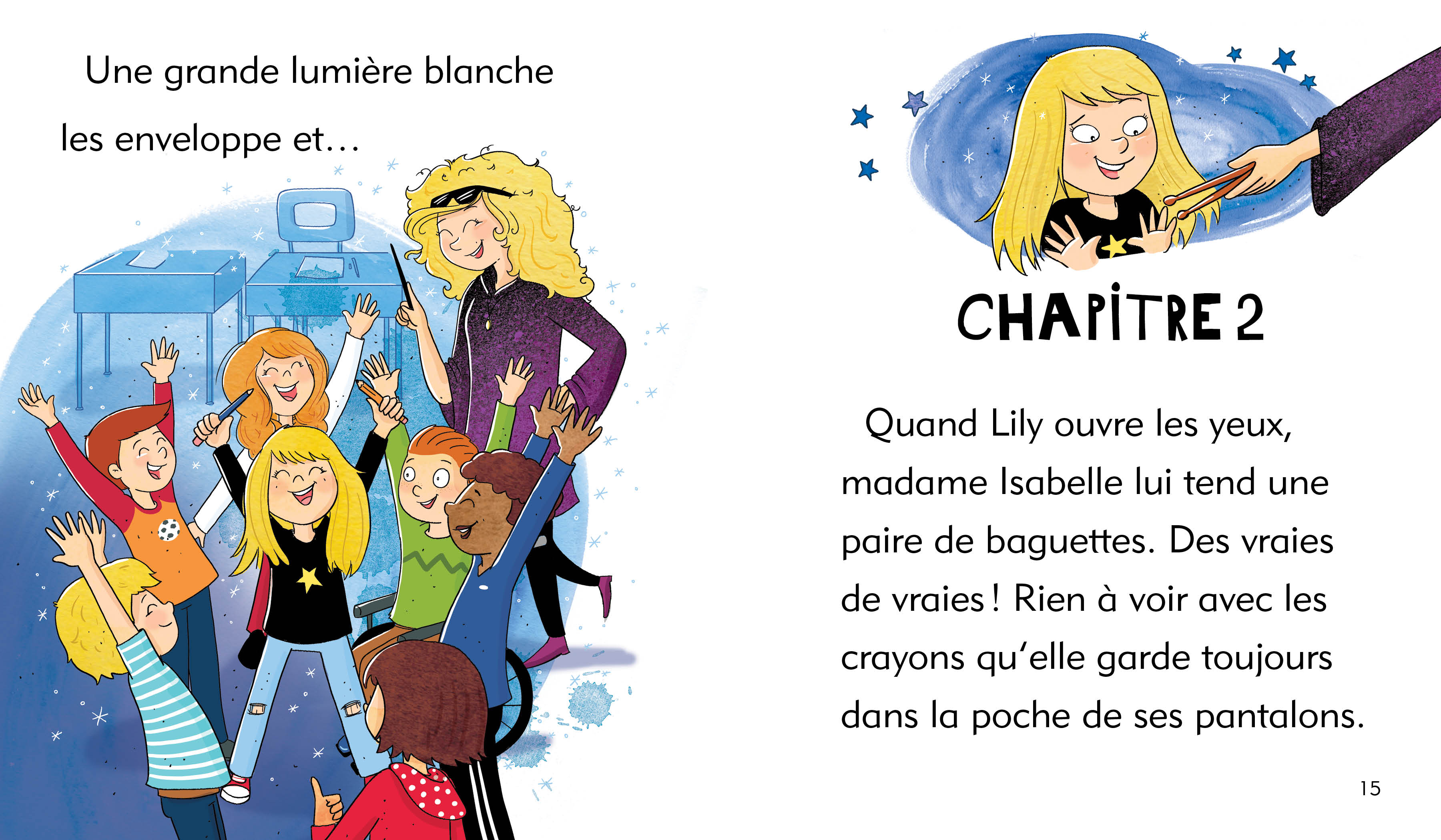 Madame Isabelle est une enseignante un peu magicienne. Dans sa classe, chaque élève peut vivre une aventure dans la peau du personnage de son choix. Lily, elle, rêve de devenir une vedette du rock…
