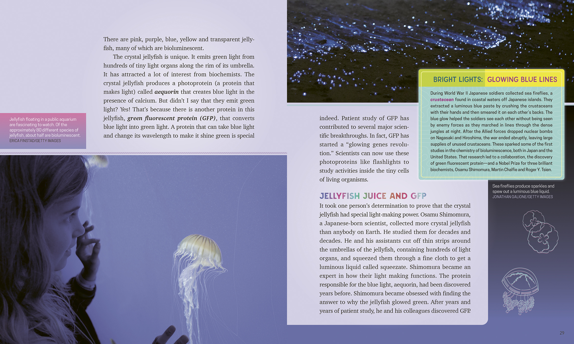 Bioluminescent animals make their own light to survive.