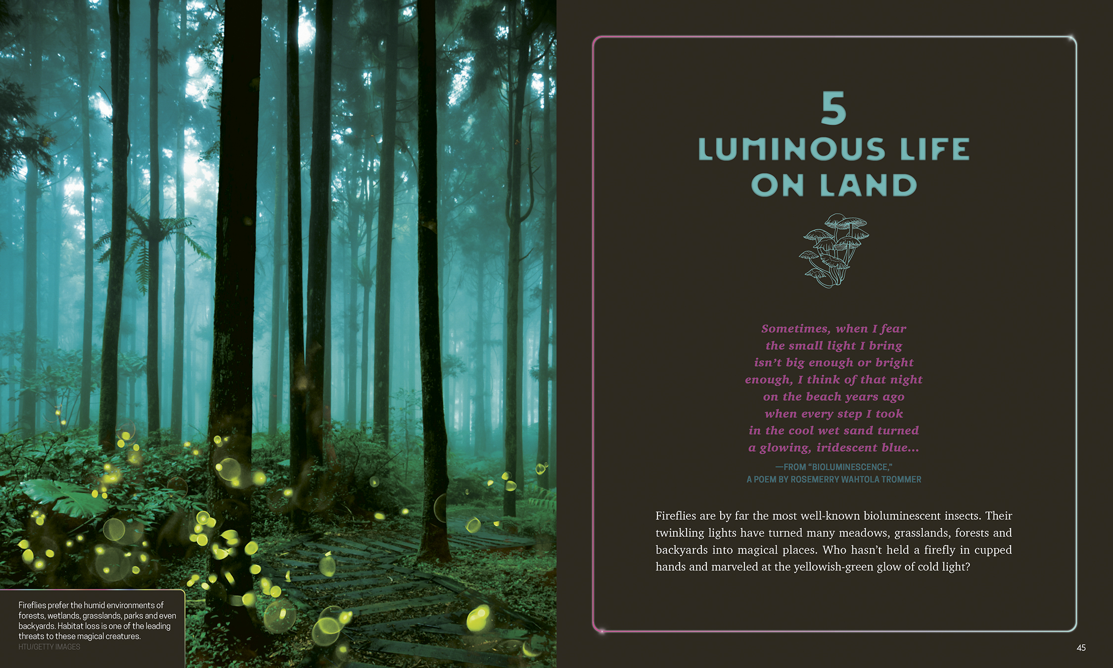 A firefly lights up the night sky, a foxfire mushroom sets the forest floor aglow and sea butterflies shine like beacons deep in the ocean. These glowing species are one of the most spectacular wonders of the natural world, and they are found on land, in the air and in the depths of the ocean.