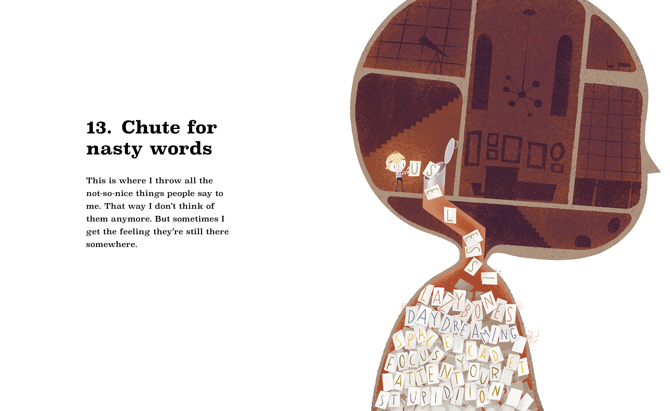 Vincent has a huge house in his head. It has an entrance, a living room, dark rooms, a light room, a space room and a control room. Vincent spends a lot of time in the control room trying to figure out how it all works, but with its thousands of flashing lights, buttons, levers and blinking screens, it can be total chaos—how is he supposed to know where to look?