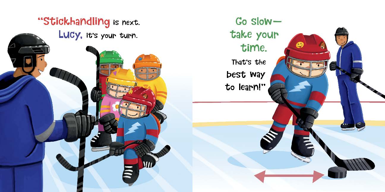Lucy and her family are skating on an outdoor rink when she sees a game of hockey going on. It looks like fun, but maybe too challenging. Supported by her parents, Lucy enrolls in an introductory hockey clinic, and thanks to an encouraging instructor, she and her friends learn basic hockey skills, have fun on the ice and decide to add hockey to their list of favorite sports!