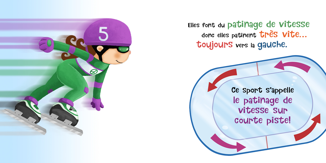 Après avoir essayé la glisse sur luge, Lucy commence une nouvelle aventure de vitesse—Cette fois-ci, elle lace ses patins et essaie le patinage de vitesse sur courte piste. C'est plus difficile que ça en a l'air. Lorsqu'on patine en tournant très vite, on risque de tomber! Mais avec ses amies, Lucy avance sur la glace dans une course palpitante vers la ligne d'arrivée.