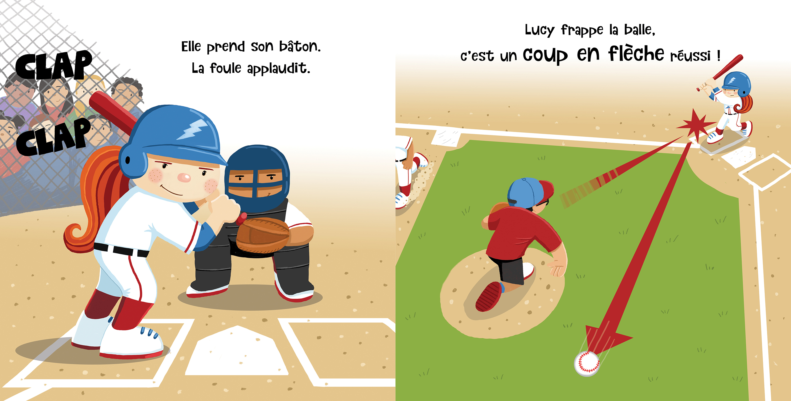 La série « Lucy fait du sport » est conçue pour encourager les enfants à être actifs, à faire du sport et à s’amuser. Lucy joue au baseball est le cinquième titre traduit en français.