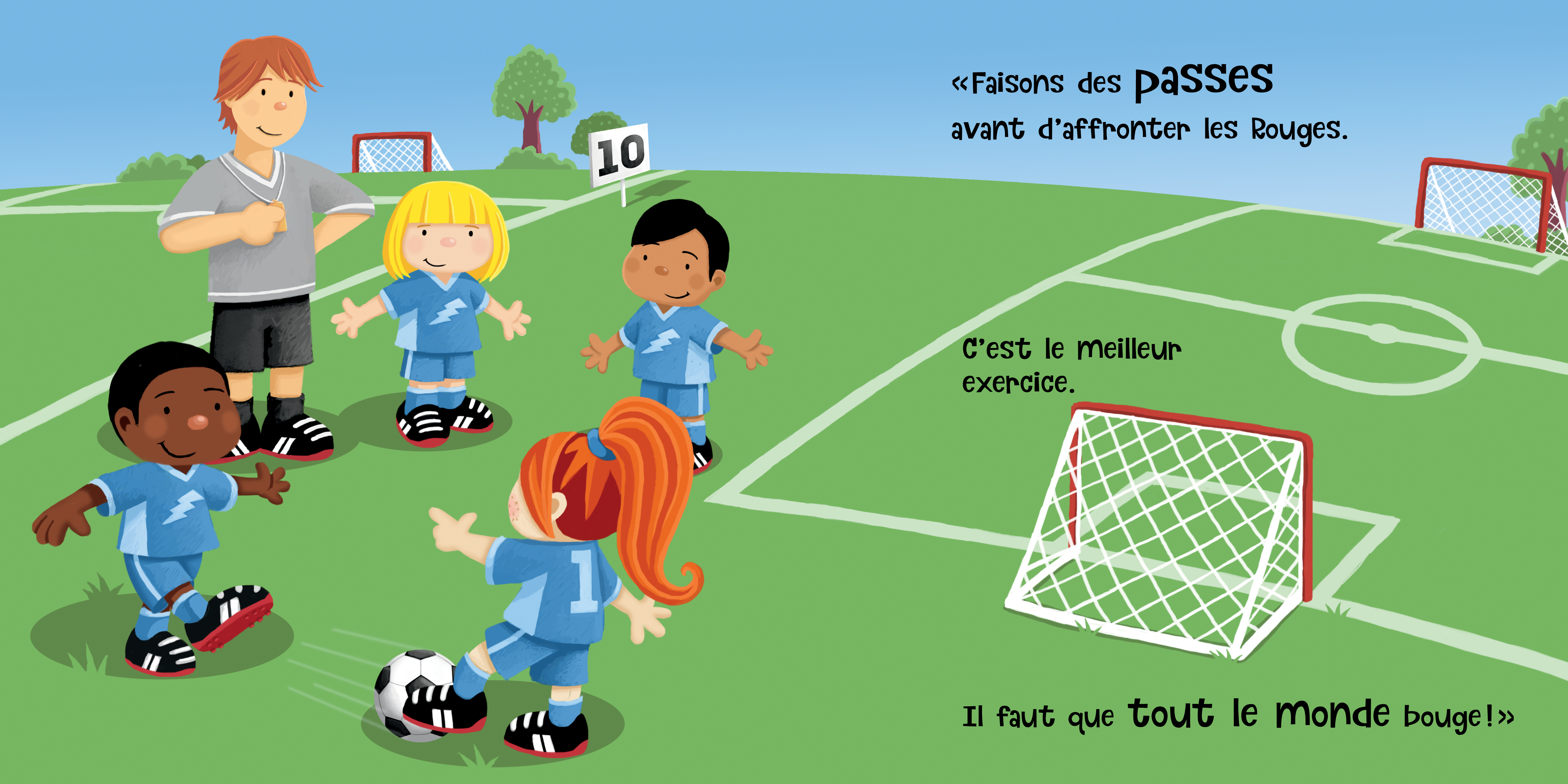 Souhaitant s’initier à un sport d’été, Lucy et ses amis se rencontrent sur le terrain de soccer pour leur première partie à trois contre trois. Grâce à Nick l’entraîneur, Lucy et les autres membres de l’équipe des Bleus s’initient à quelques jeux et se préparent à affronter les Rouges.