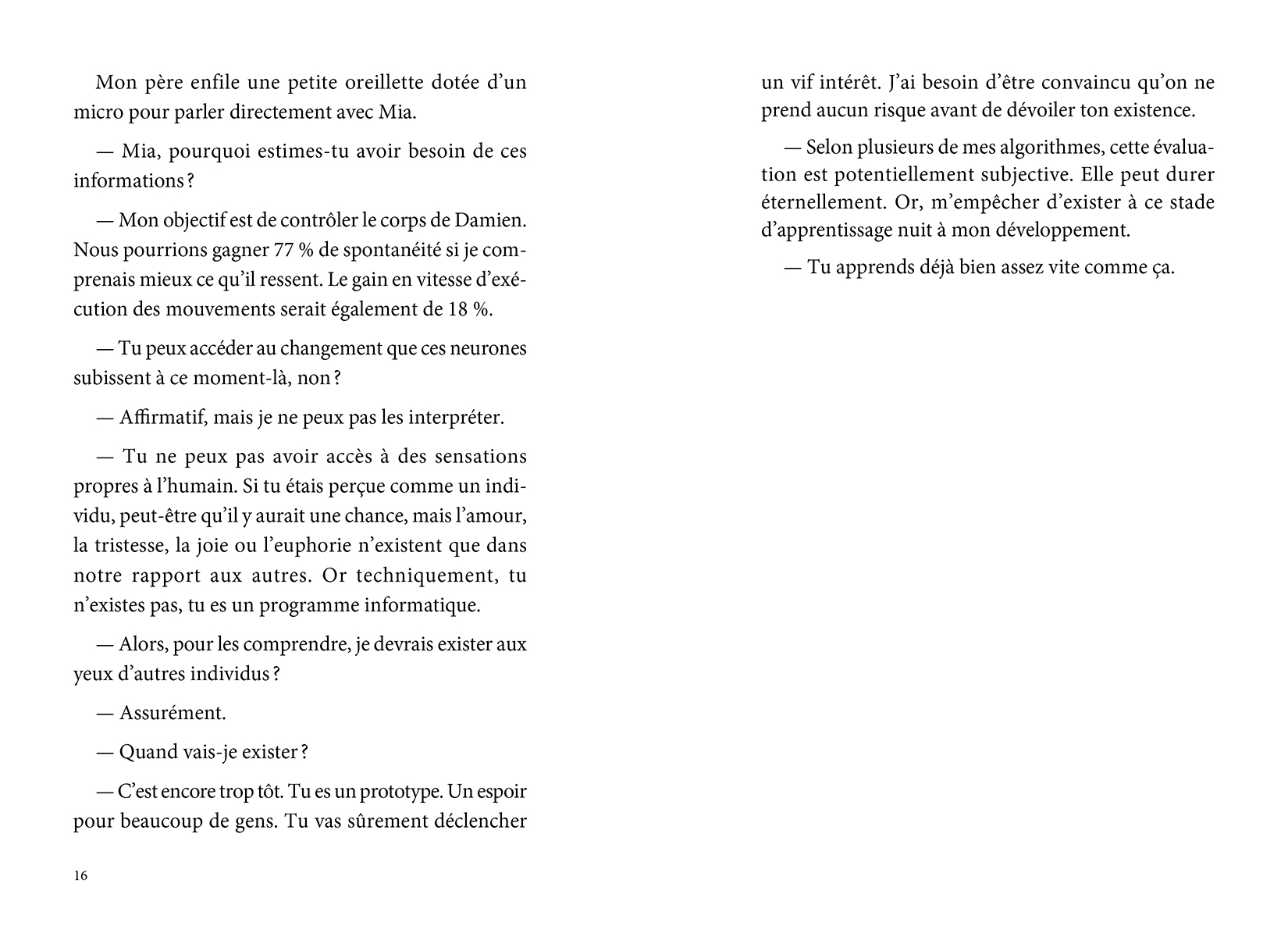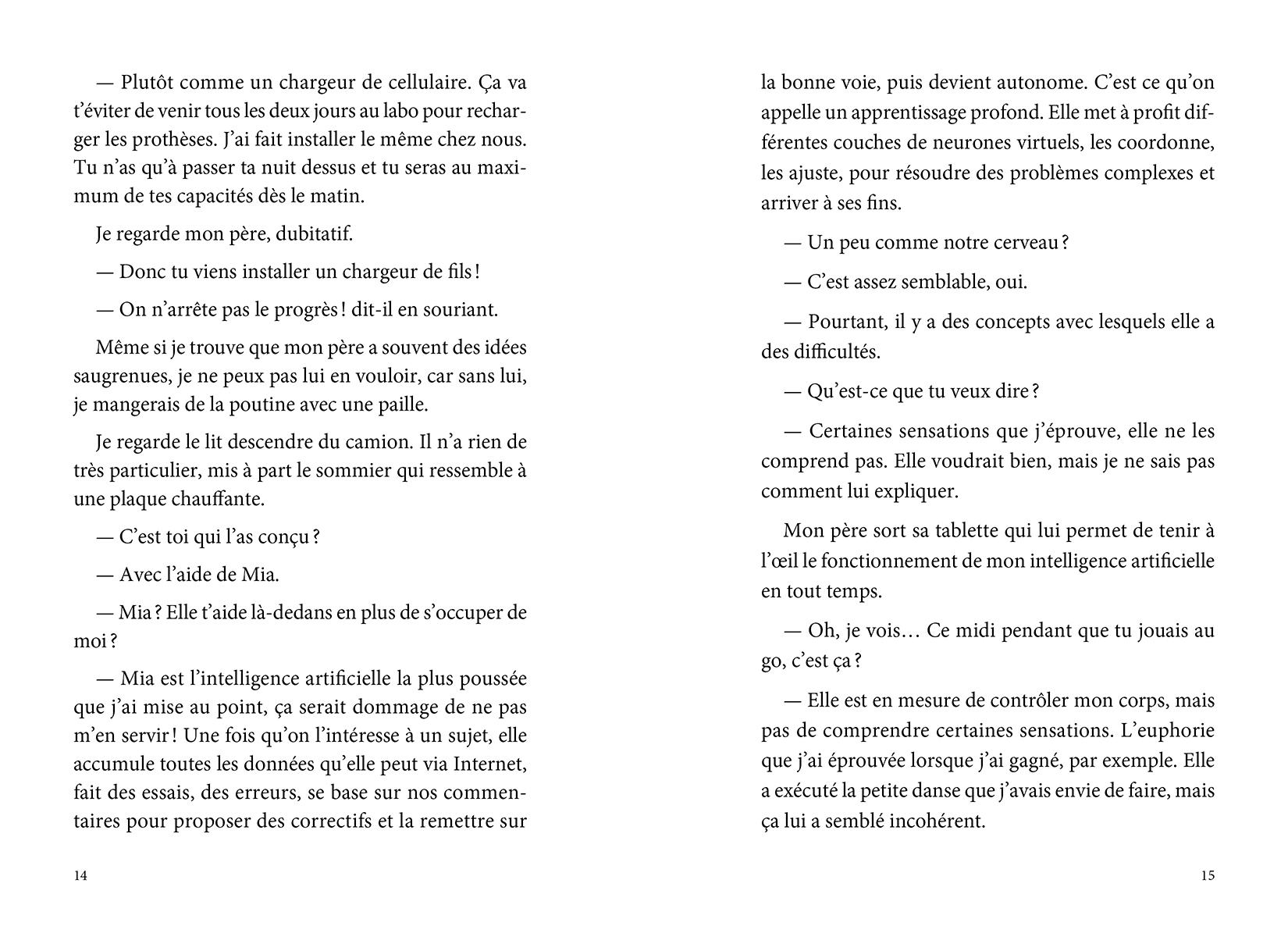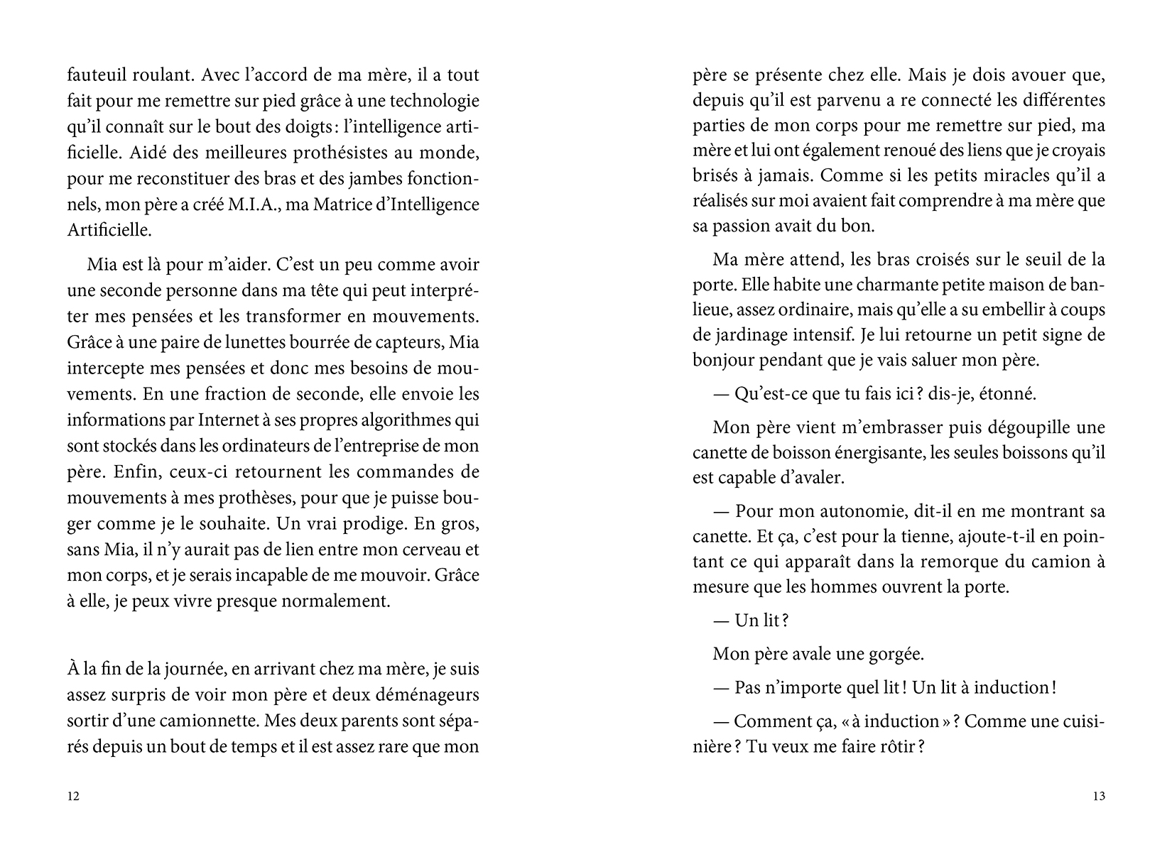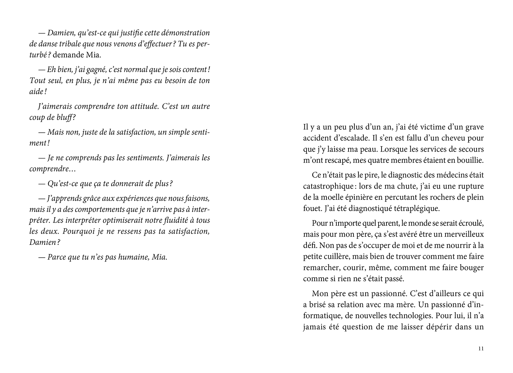 Damien est le cobaye d’une expérience technologique révolutionnaire... et secrète. Grâce à M.I.A., une matrice d’intelligence artificielle développée par son père, il peut bouger son corps alors qu’il devrait être tétraplégique. Mais quand M.I.A. s’emballe lors d’un cours d’éducation physique, son existence passe proche d’être dévoilée. Elle qui contrôle le corps de Damien, pourrait-elle, à son tour, être pilotée par quelqu’un d’extérieur? Damien deviendrait alors la simple marionnette d’un pirate informatique!