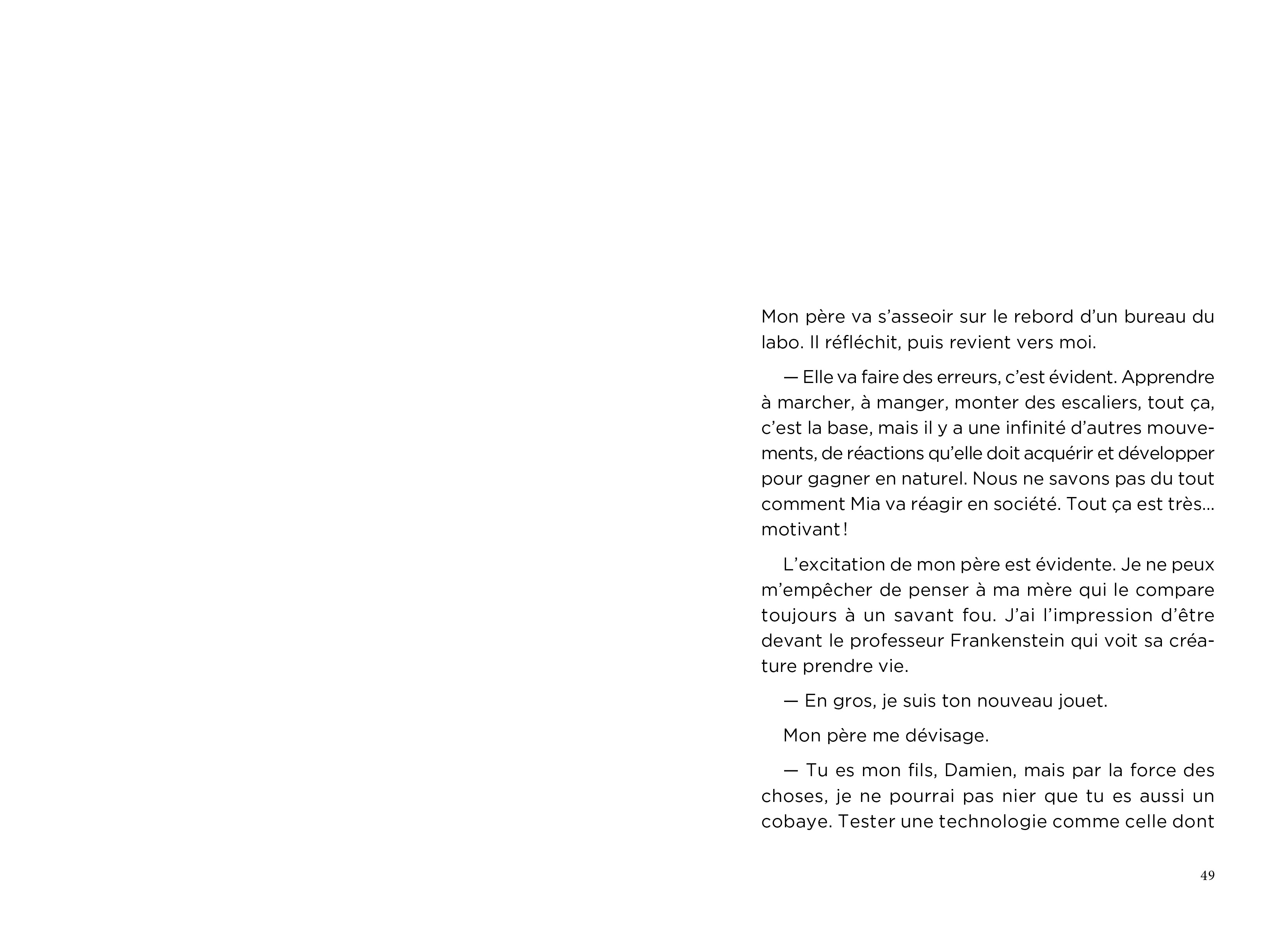 Sa réalité d’aujourd’hui est toutefois bien différente de celle d’avant. L’intelligence artificielle qui rend tout ça possible est plutôt invasive et le duo qu’elle forme avec Damien en a encore beaucoup à apprendre sur la créativité, les relations sociales et l’art de ne pas se ridiculiser en public.