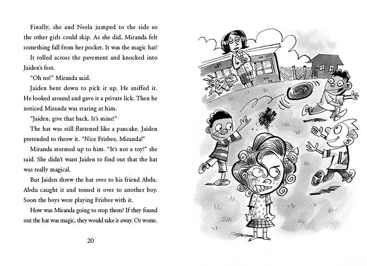 It's full of books, pencils, science projects and…other stuff. Too much stuff, says her teacher, Ms. Basil. On a family visit to her Uncle Aldo's one night, Miranda wonders if some of his magician's tools might offer a solution to her messy-desk problem. Sneaking off to the magic room, Miranda finds Uncle Aldo's impressive collection of top hats. Miranda knows that magic top hats can hold lots of things—why not the mess from her desk? At first, the hat seems to do the trick, but soon things start to go horribly wrong. As Uncle Aldo says, you have to be careful with magic.