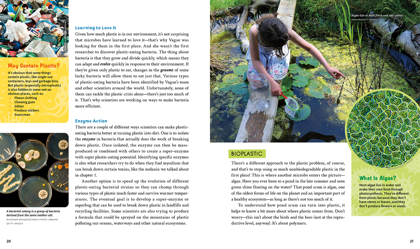 When left alone, microbes such as bacteria, fungi and algae are experts at adapting, surviving and thriving under extreme and constantly changing conditions. These natural problem solvers can help fight the climate crisis by gobbling up pollutants, breaking down plastic, generating clean energy and capturing carbon. By harnessing the power of microbes, we can create eco-friendly packaging, farm-free food, and even make it easier to live in space! Microbes to the Rescue will introduce young readers to life on a microscopic level and explore how bacteria, fungi and algae play a key role in the connection between all life on Earth. Let’s get microscopic and learn about how microbes can create a cleaner and more sustainable future.