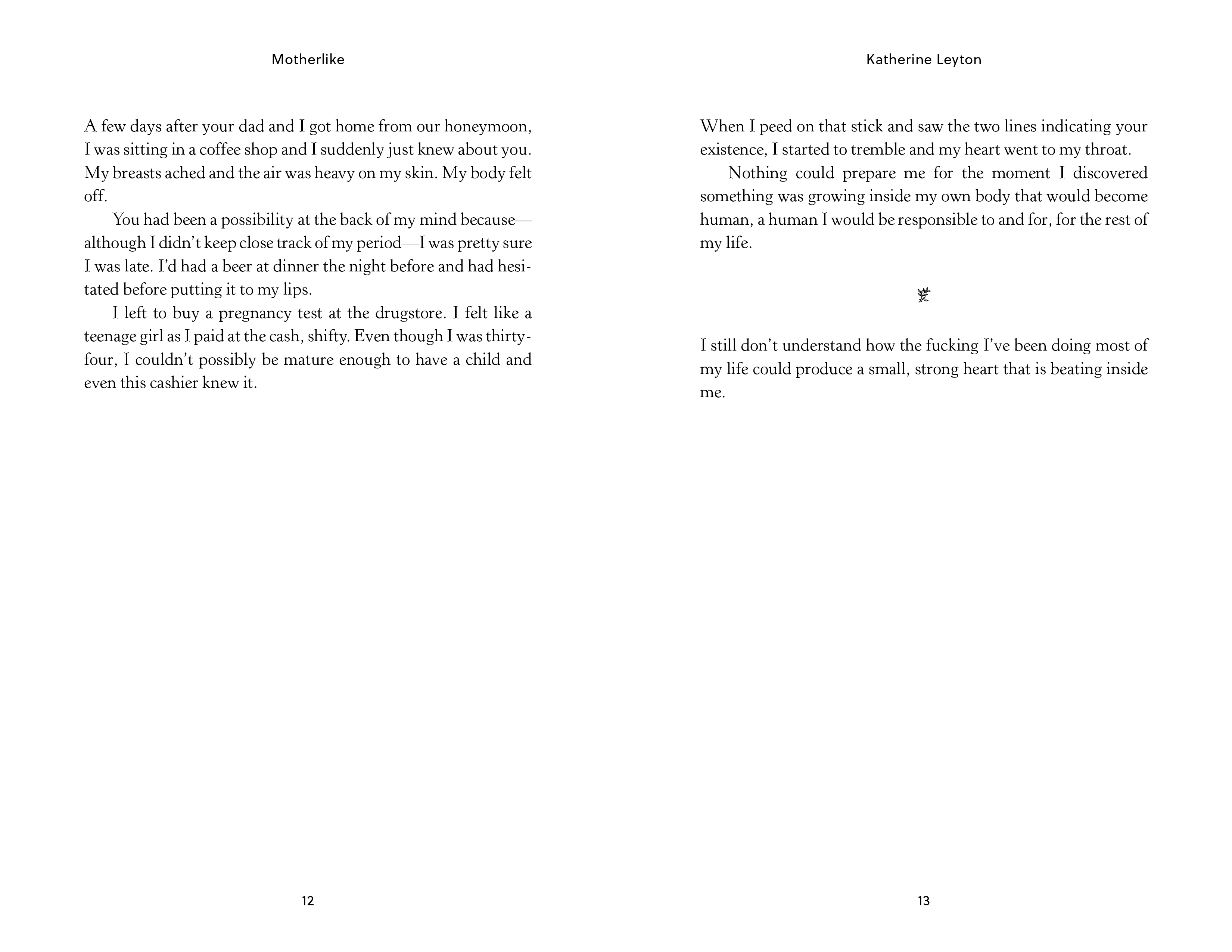 As soon as Katherine Leyton discovered she was pregnant, a powerful reckoning began. Motherlike is both a feminist memoir of new motherhood as well as a rumination on womanhood. A book for anyone interested in an honest and revealing look at a process that is essential to our experience as humans, and yet is routinely unexamined and dismissed.