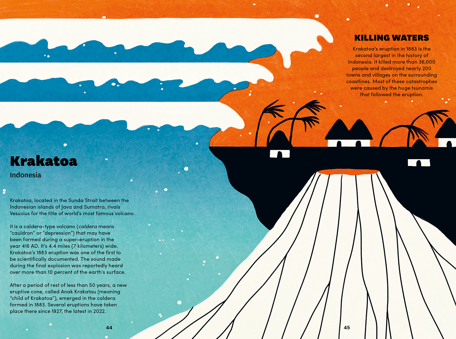 Krakatoa. Kilimanjaro. Vesuvius. The destructive power of volcanoes has claimed more than 250,000 lives since the beginning of civilization. Whether as objects of worship or of terror, they have shaped our world and fed the human imagination. And they can be found just about everywhere, from ancient Pompeii to the geysers of Yellowstone to the bottom of the Pacific Ocean and the surface of Jupiter. Teaming up with award-winning illustrator Aless MC, volcanologist Julie Roberge takes us on a journey to the heart of the earth to discover the most famous of these geological monsters.