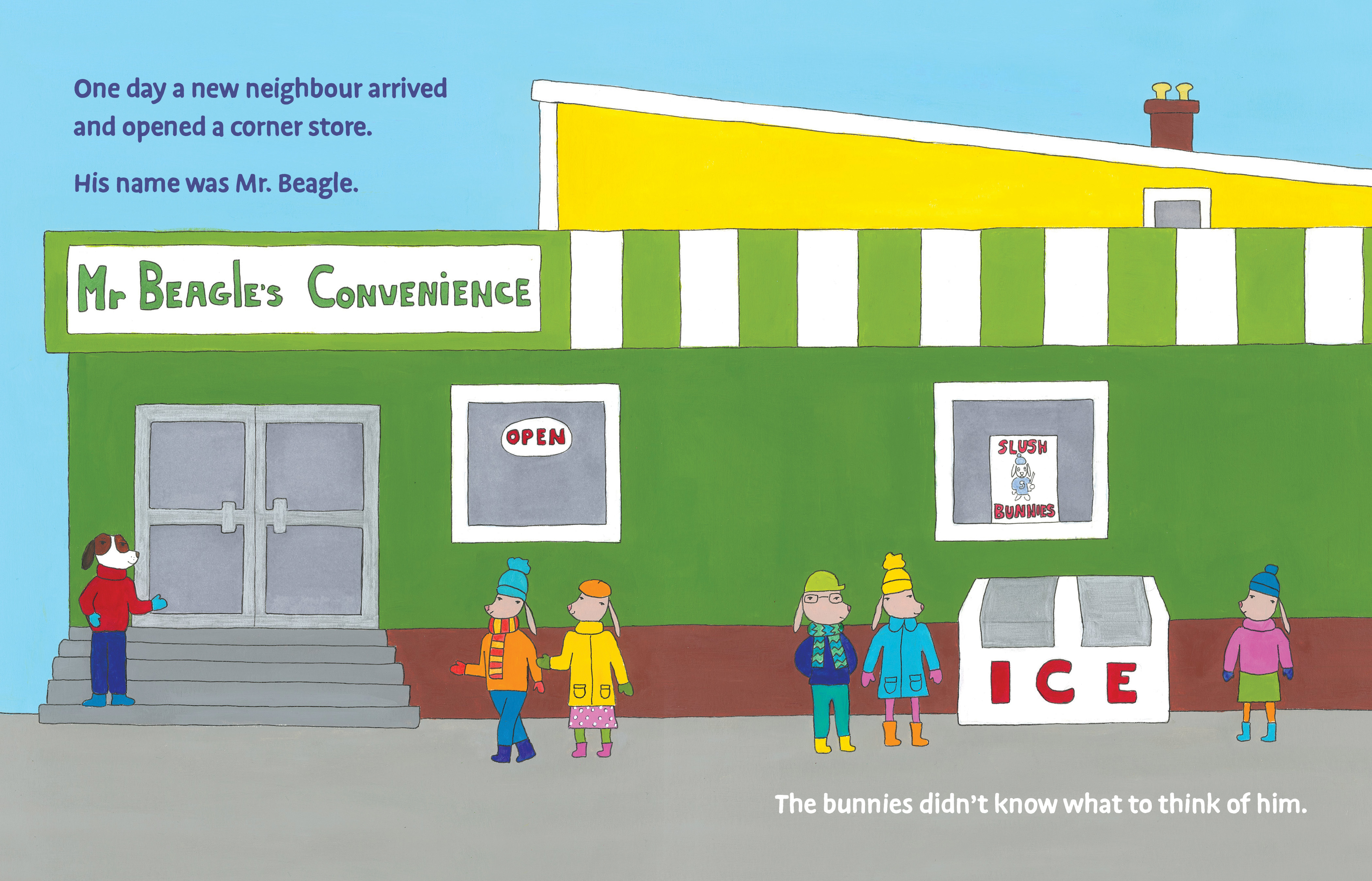 With quirky, charming illustrations and sweet, simple text, Mr. Beagle Goes to Rabbittown celebrates how one finds a space in a new place, and the warm embrace of community.