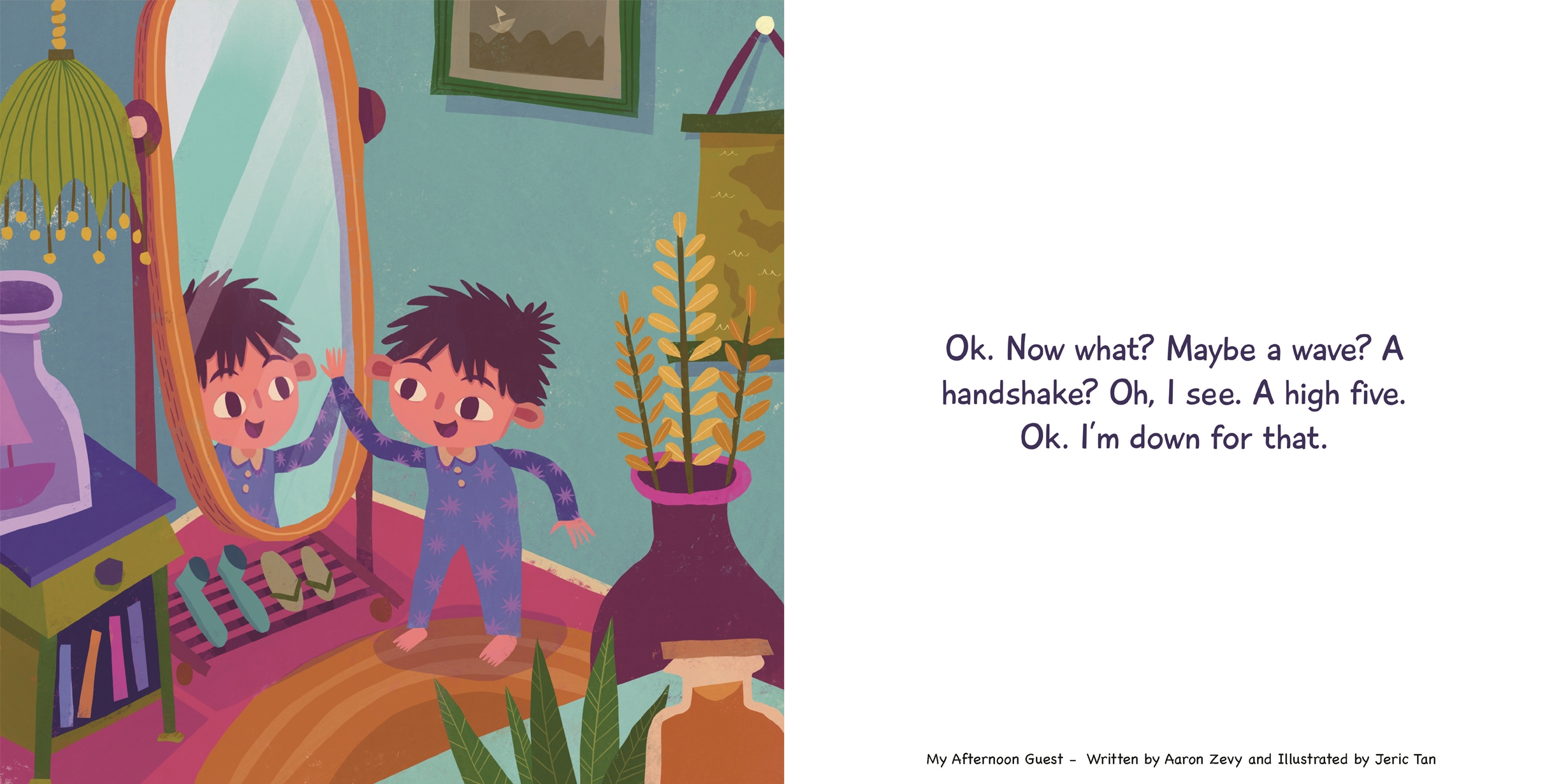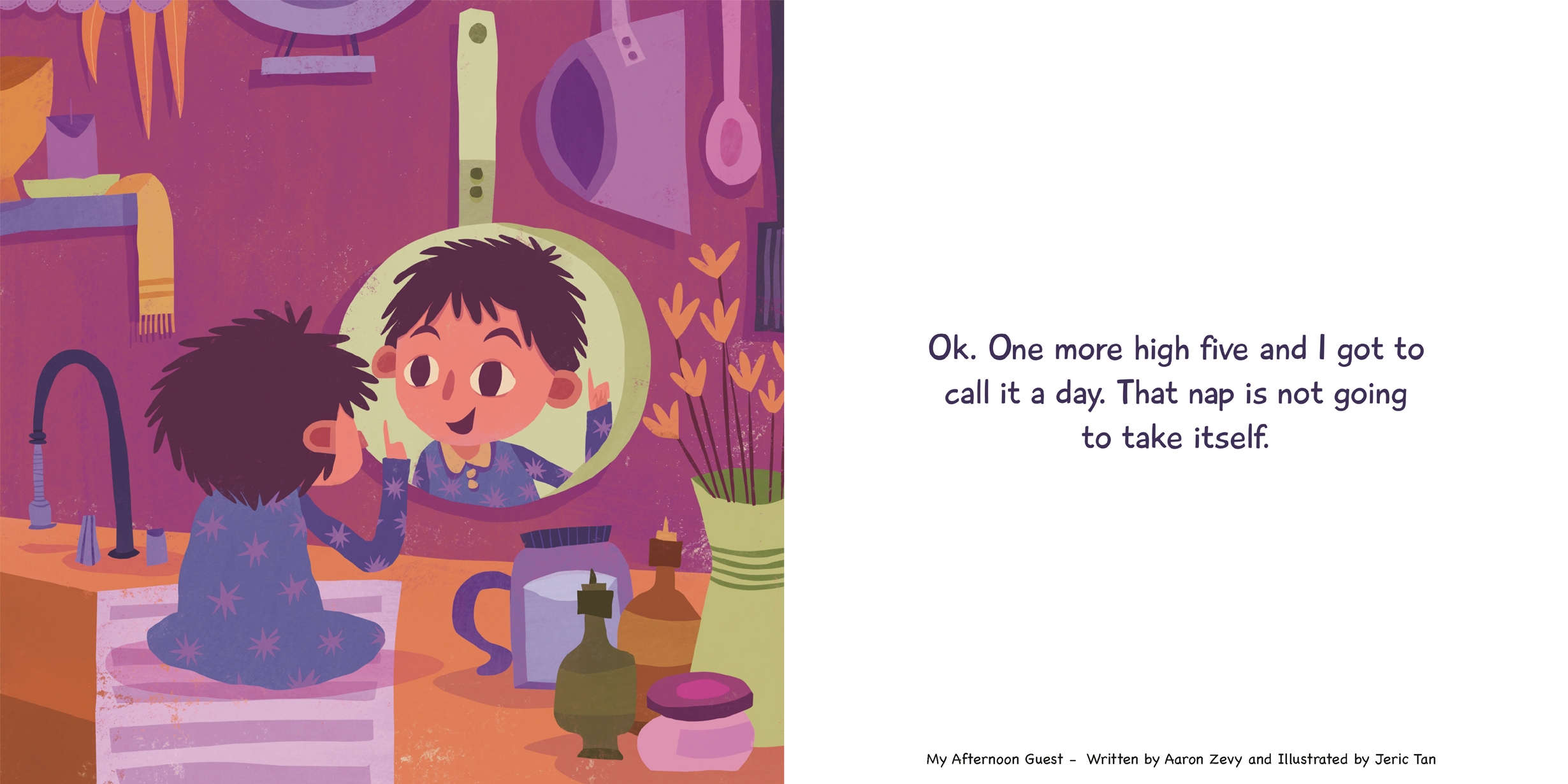 In this imaginative story, a child's first encounter with a mirror turns into an afternoon adventure. Its hilarious interpretation of early childhood development is unique among children's books today. The vibrant illustrations compliment Zevy’s playful prose and charming main character.