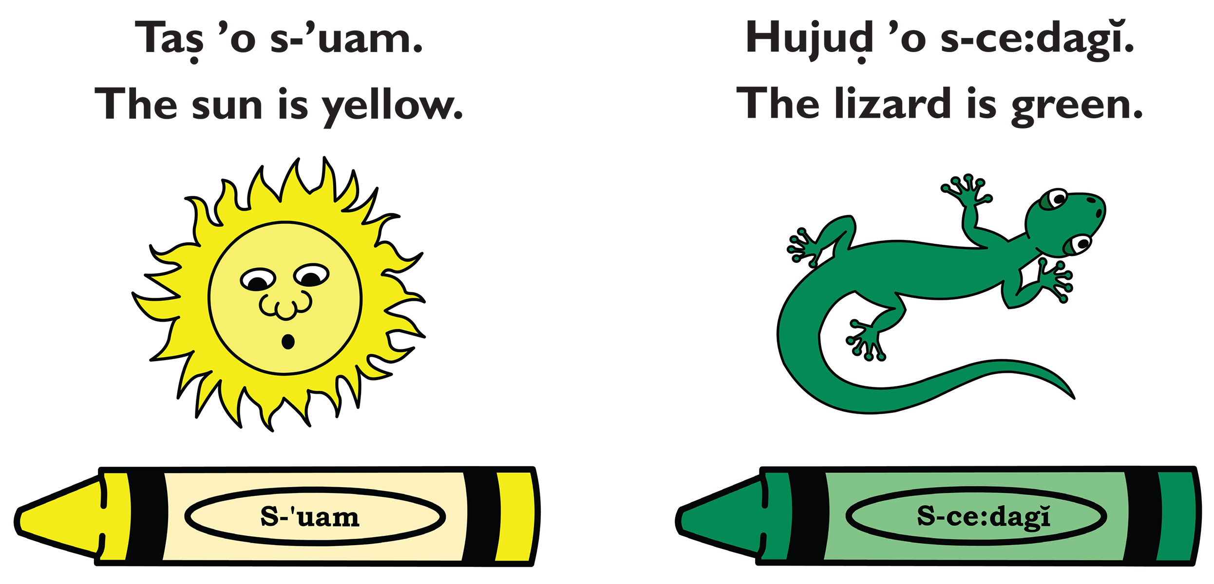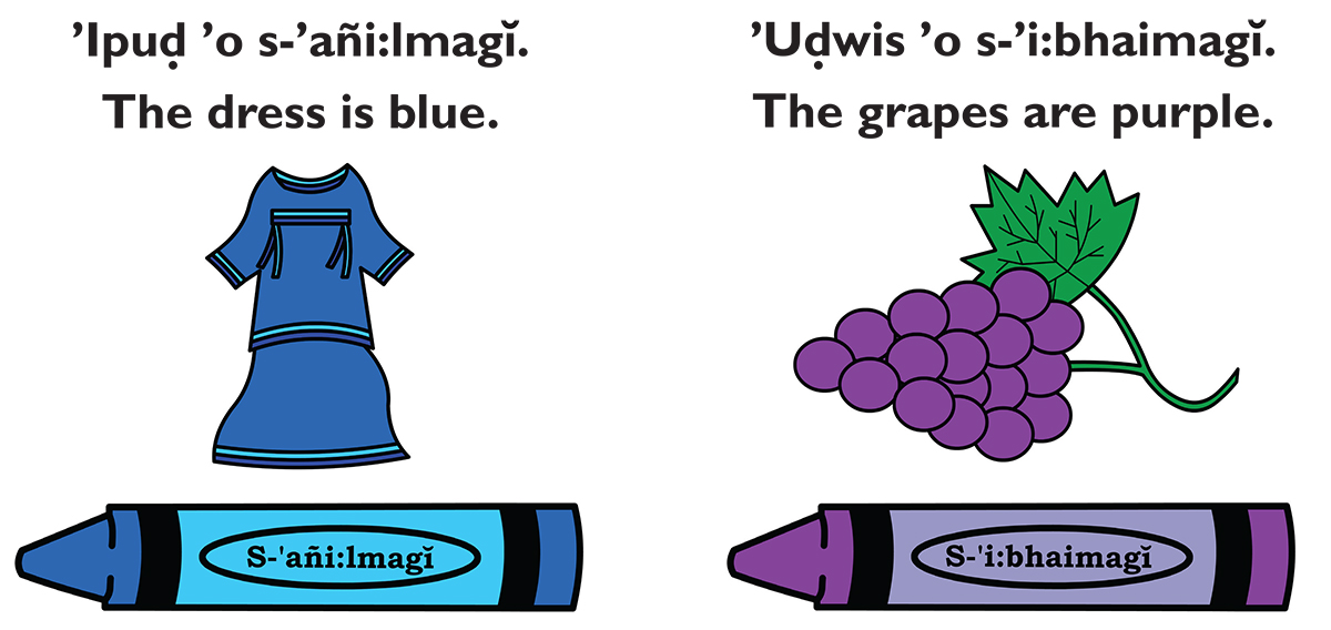 A great book for teaching children basic colors in both the O’odham and English languages. This bilingual book, written by an O’odham author, introduces common words and colors and allows them to match O’odham words, colors, and concepts. Each page features a color word with a corresponding picture of common O’odham vocabulary words. This colorful and vibrant book is a fun way to fortify colors and common words in both O’odham and English. The book includes a glossary in the back as well as a QR code to hear the words pronounced by a traditional O’odham speaker.