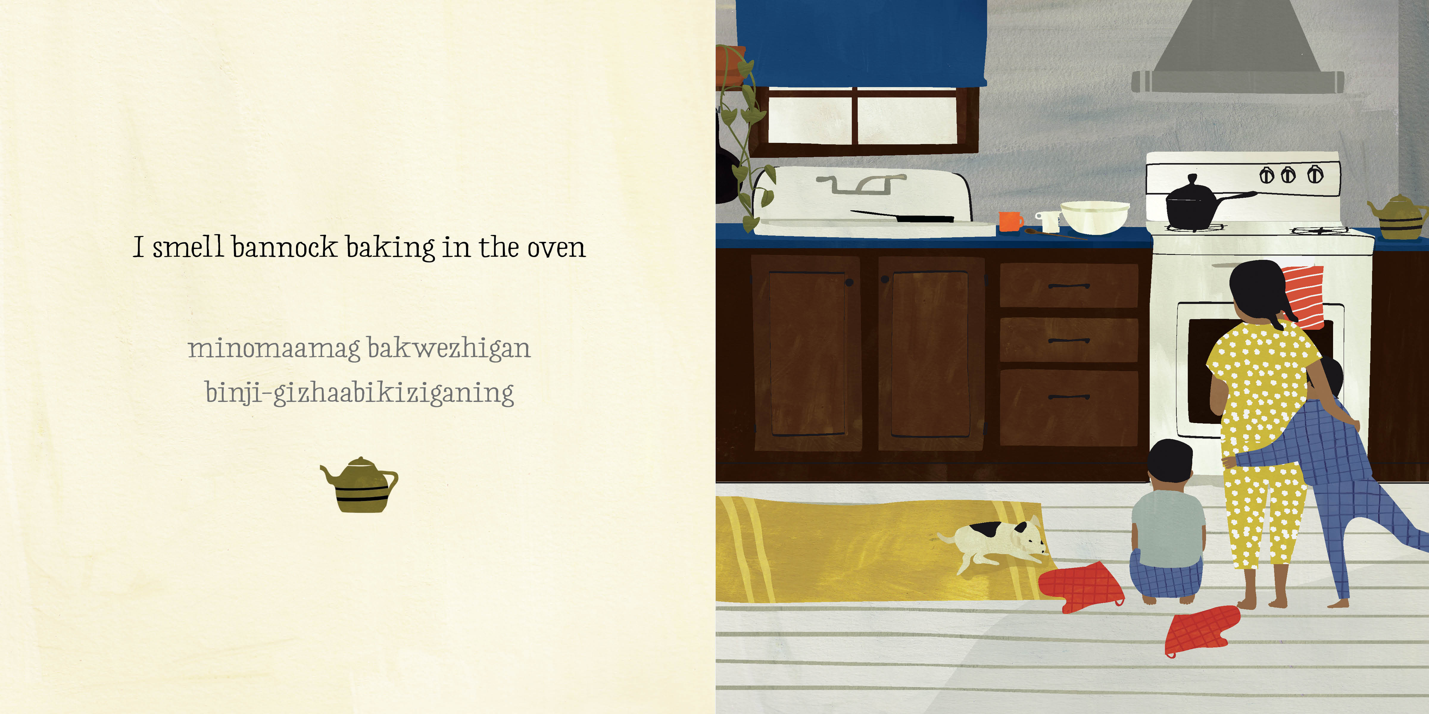 This bilingual book includes full text in both English and Anishinaabemowin.