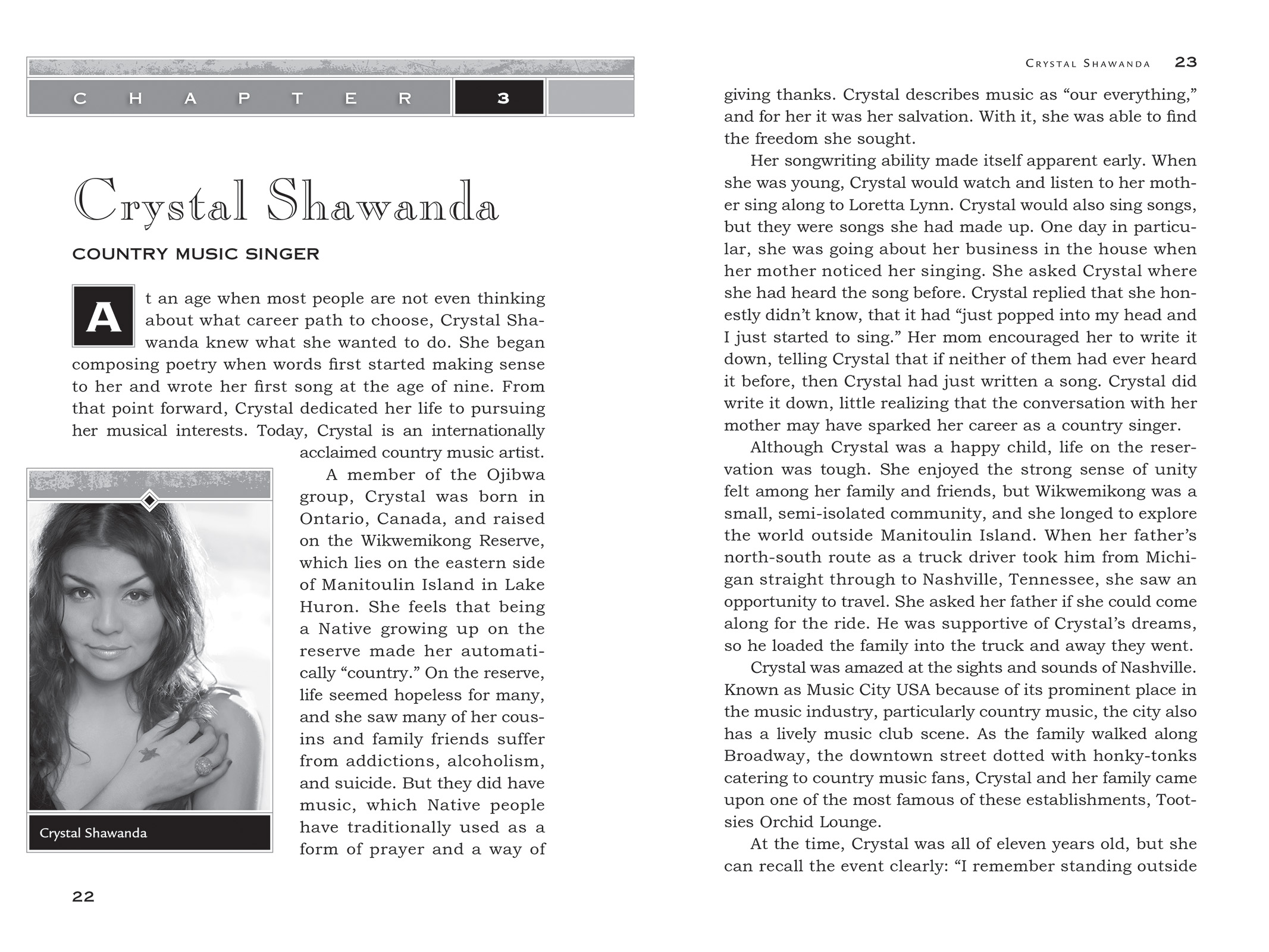 - Crystal Shawanda (Ojibwe) - Canadian vocalist/songwriter