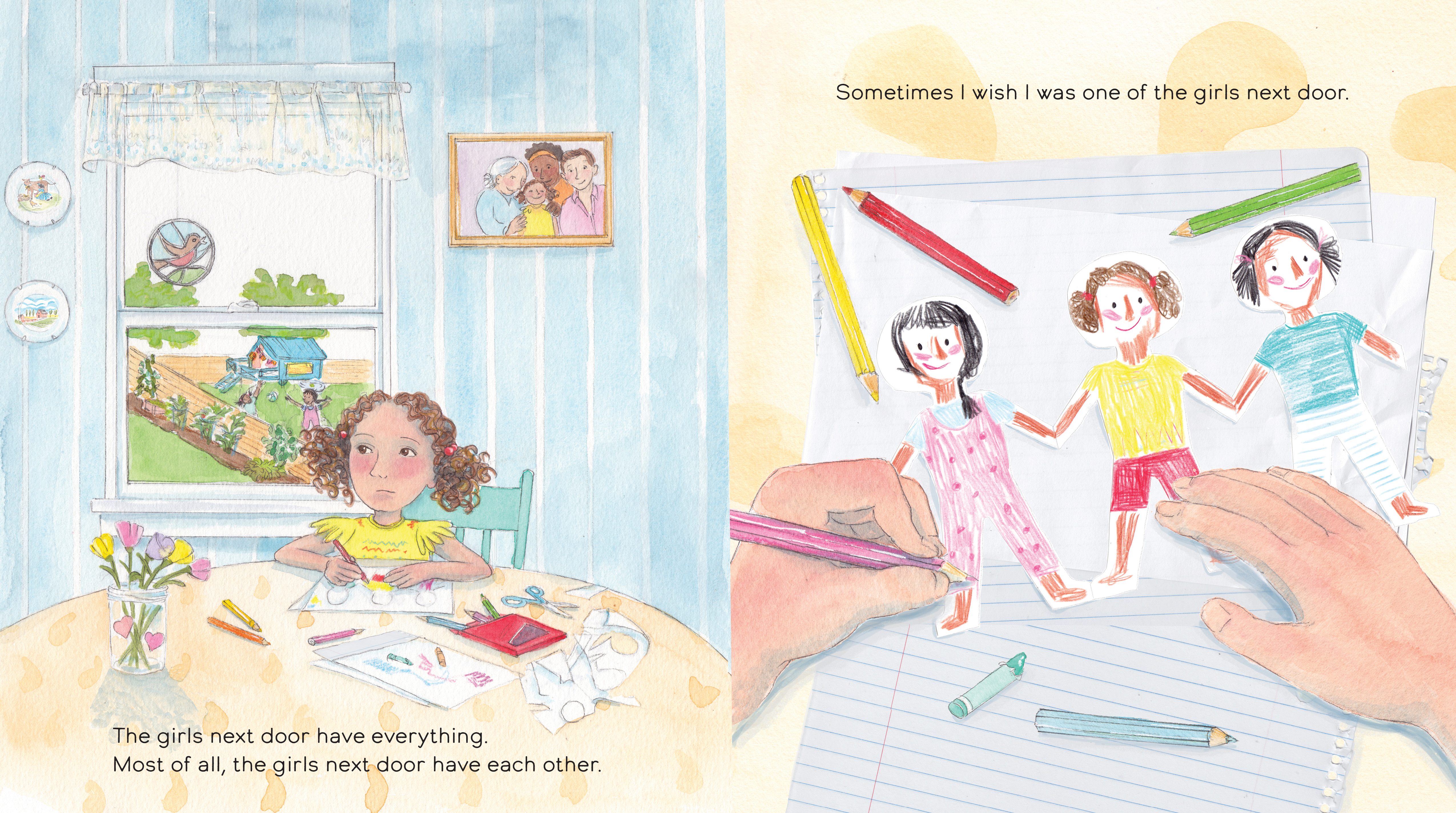 They have a dog named Jake, a cat named Paws, a turtle, and a treehouse. Most of all, the girls next door have each other. But there is one thing that they don’t have... and it might be the most special thing of all.
