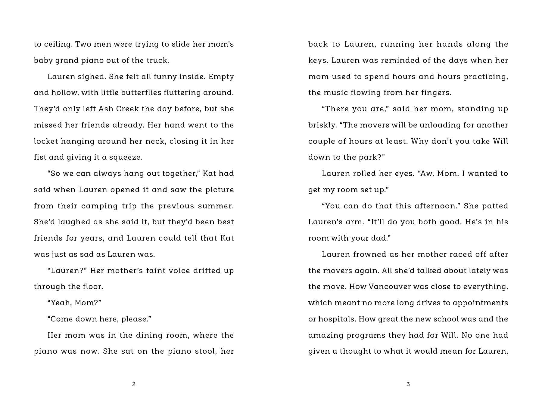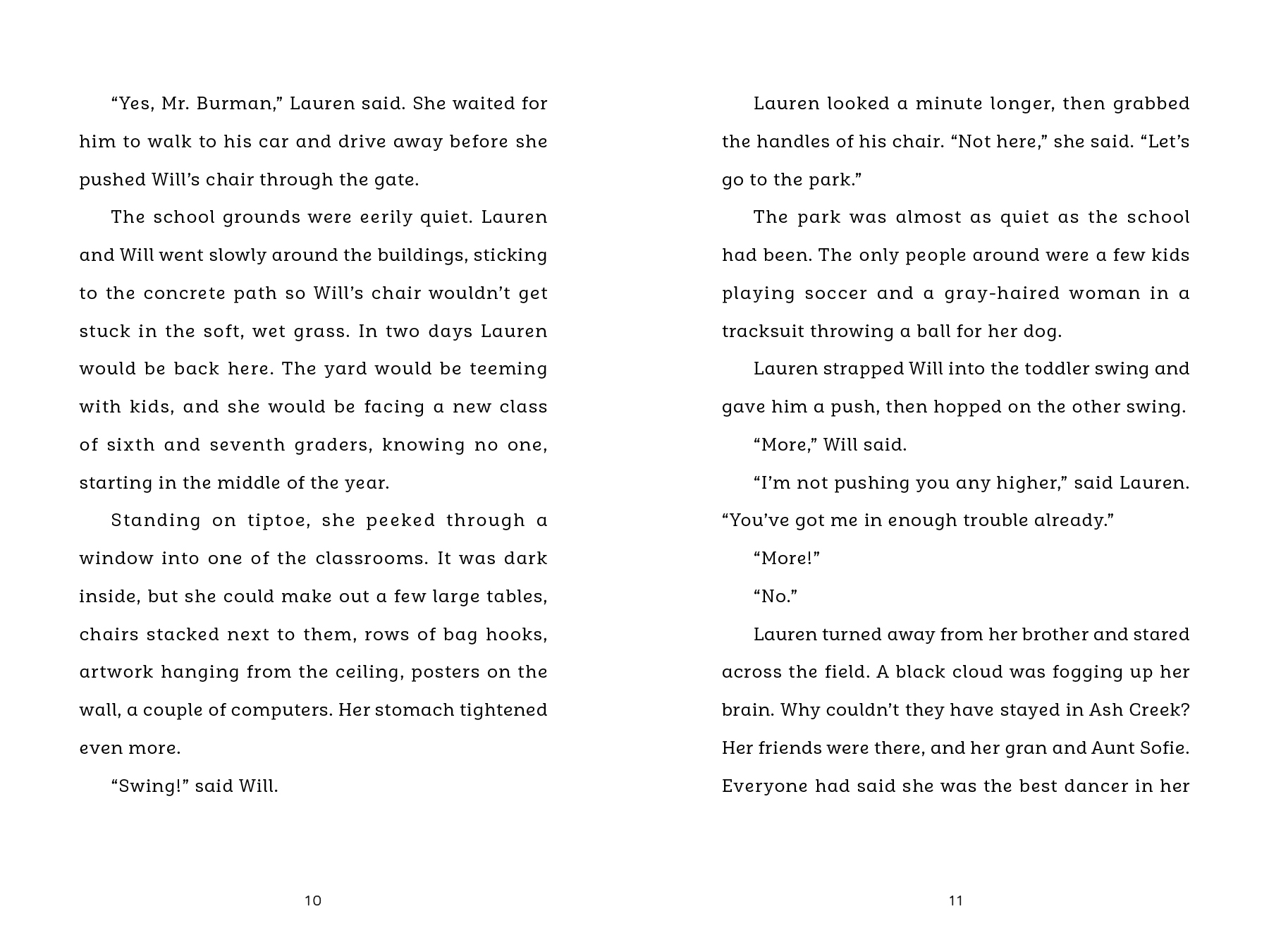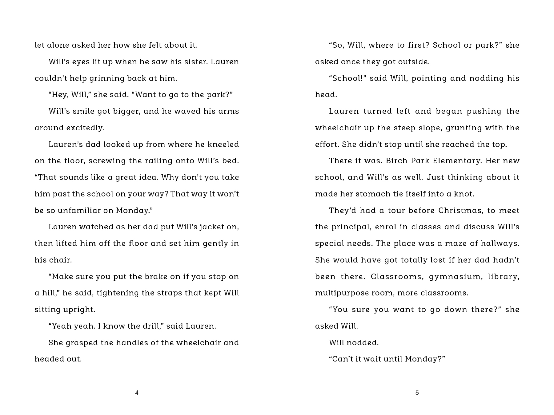 So Lauren is relieved when Callie, Treena and Maddy welcome her into their group. But then Lauren witnesses their reaction to a first-grader in a wheelchair. That kid is her little brother, Will. But she’s afraid that if she tells them, they may not want to be friends with her. Soon Lauren finds herself living a double life as she struggles with the challenges of building new friendships and trying to make it up to Will for not acknowledging him at school. At some point Lauren will have to make a decision. What is more important—friends or family?