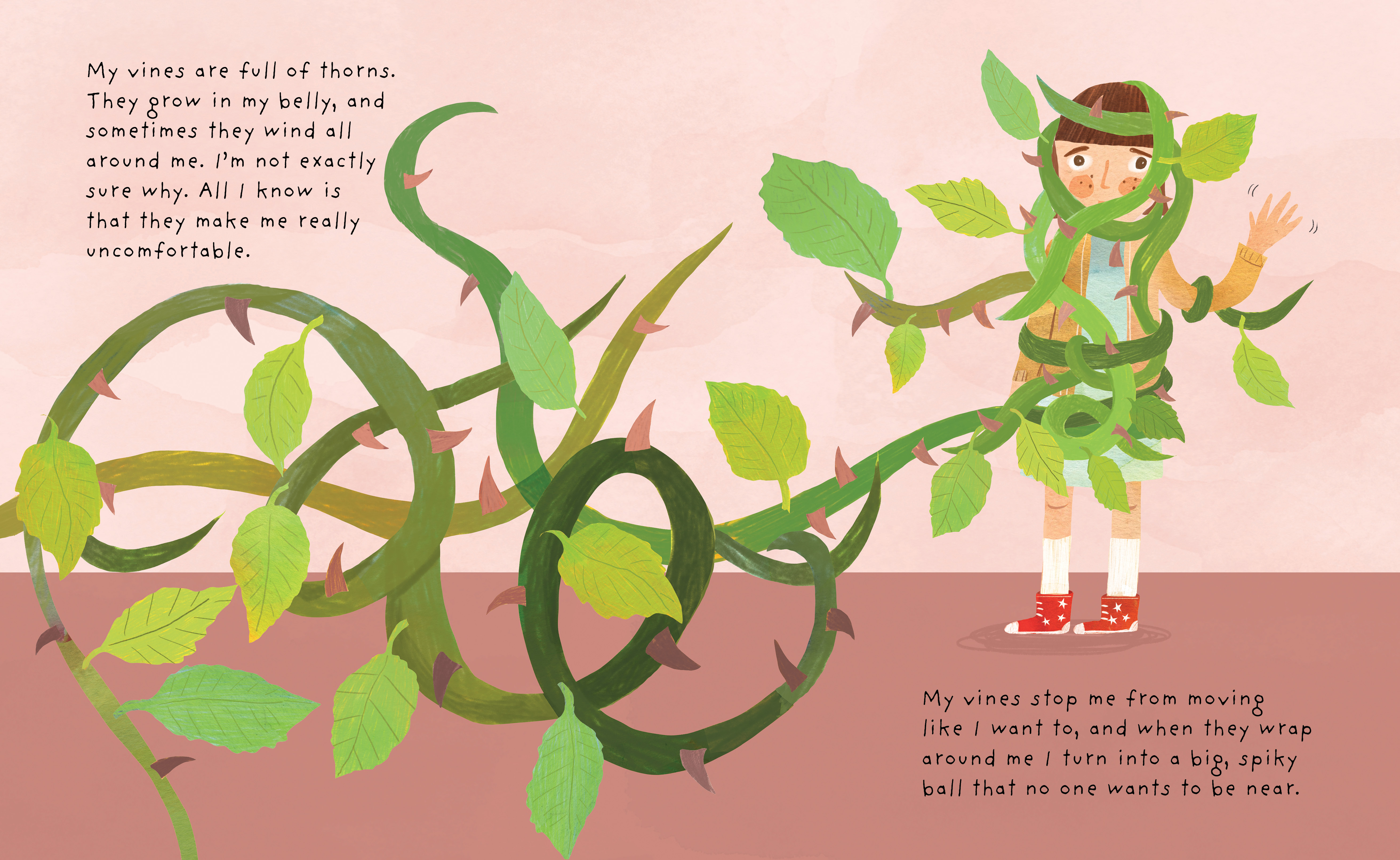 When Olivia starts to feel overwhelmed by her big feelings, she sprouts vines. They are thorny and twisty and make it impossible for Olivia to do the things she loves to do, like ride her bike or play with her friends. Plus, no one wants to come near a giant ball of thorns. Luckily, Olivia has a very special teacher. Someone who sees past the prickly and the pokey to the upset little girl and helps Olivia learn to manage the vines.