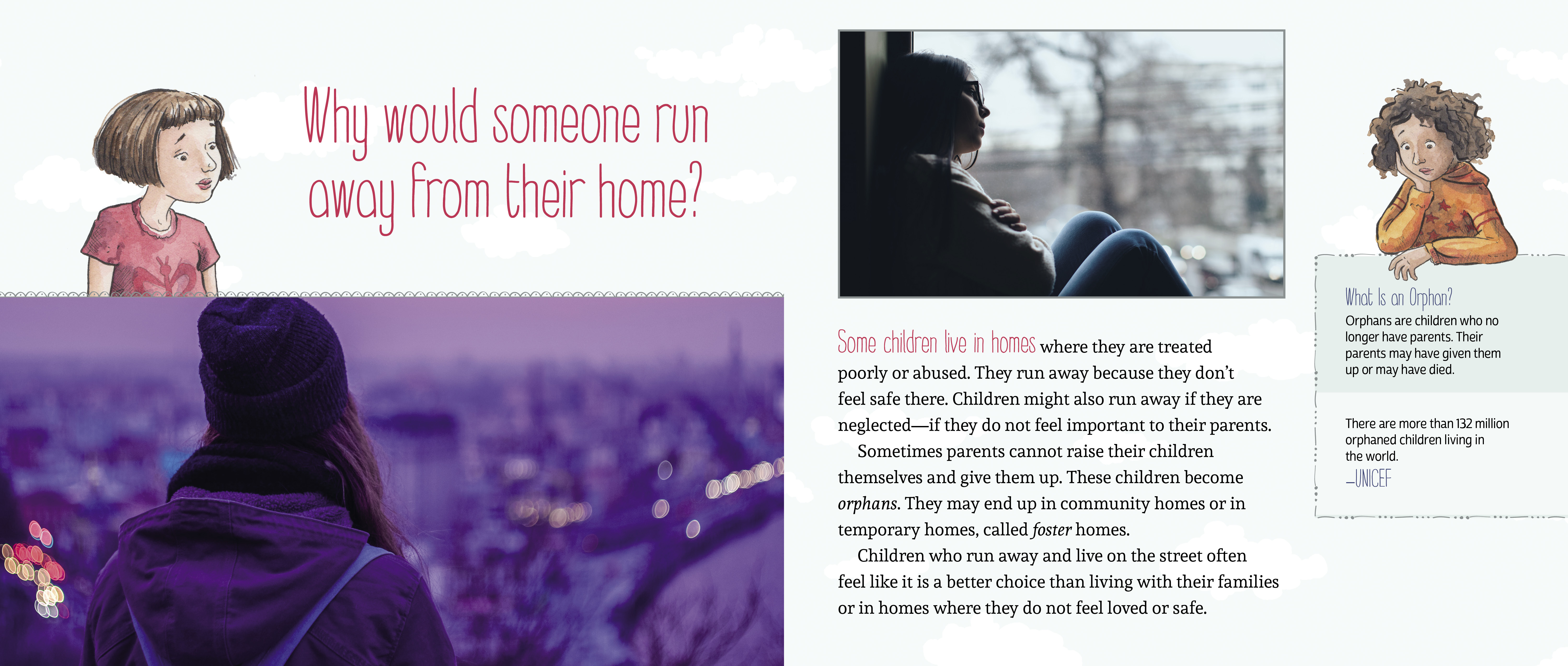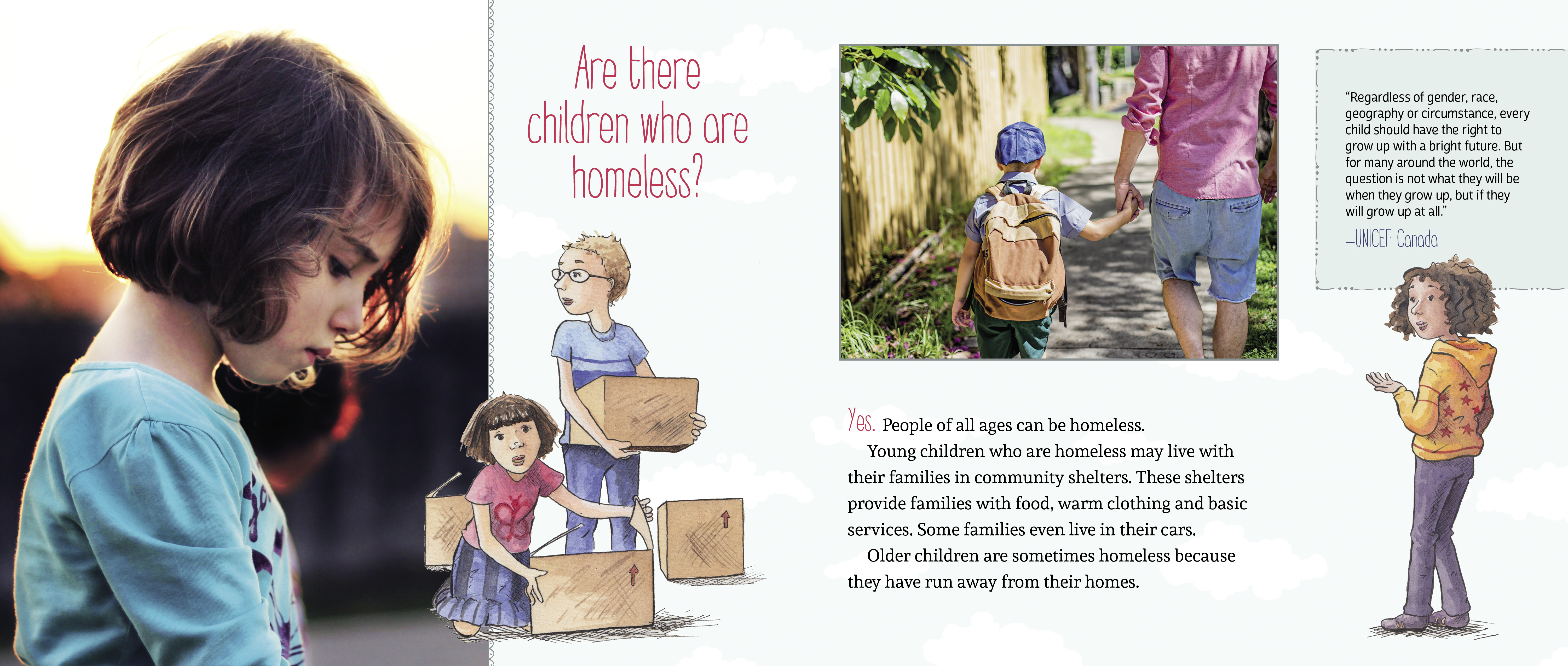 Using age-appropriate language, this book addresses mental illness, homelessness and refugee status as they are connected to this issue. Insightful quotes from individuals and organizations such as UNICEF are included throughout to add further perspective on the issue. An invaluable section on how kids can help empowers readers to take what they have learned and use it to make a difference.