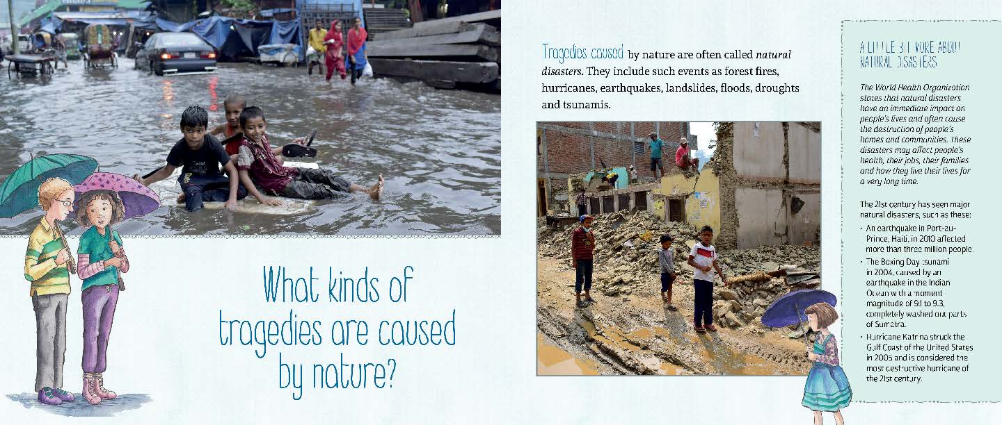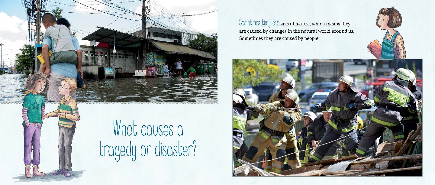 Introduces children to the realities of natural disasters, terrorism and other forms of tragedy.