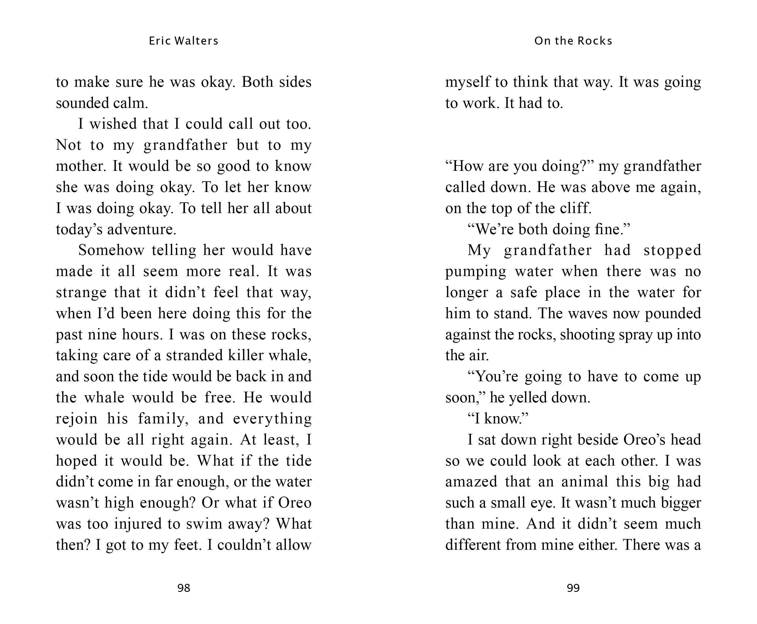 Fourteen-year-old Dylan is sent to live with his estranged grandfather, Angus. Basically strangers, the two avoid each other as best they can. One day Dylan discovers a young orca stranded high up on the rocky beach. Dylan runs to tell his grandfather. There’s nothing that can be done, says Angus. The sun is coming up, and soon the orca will die of exposure.