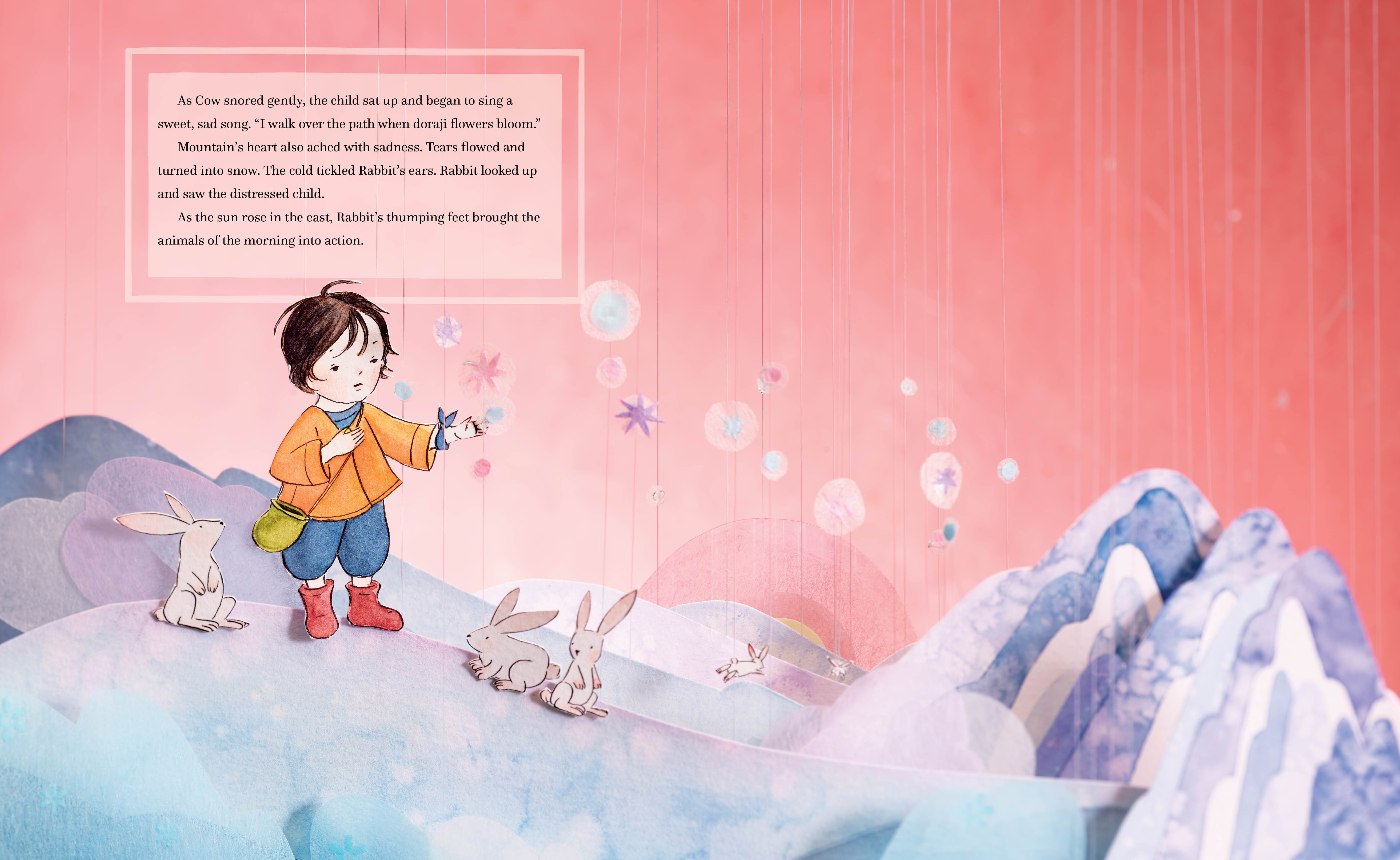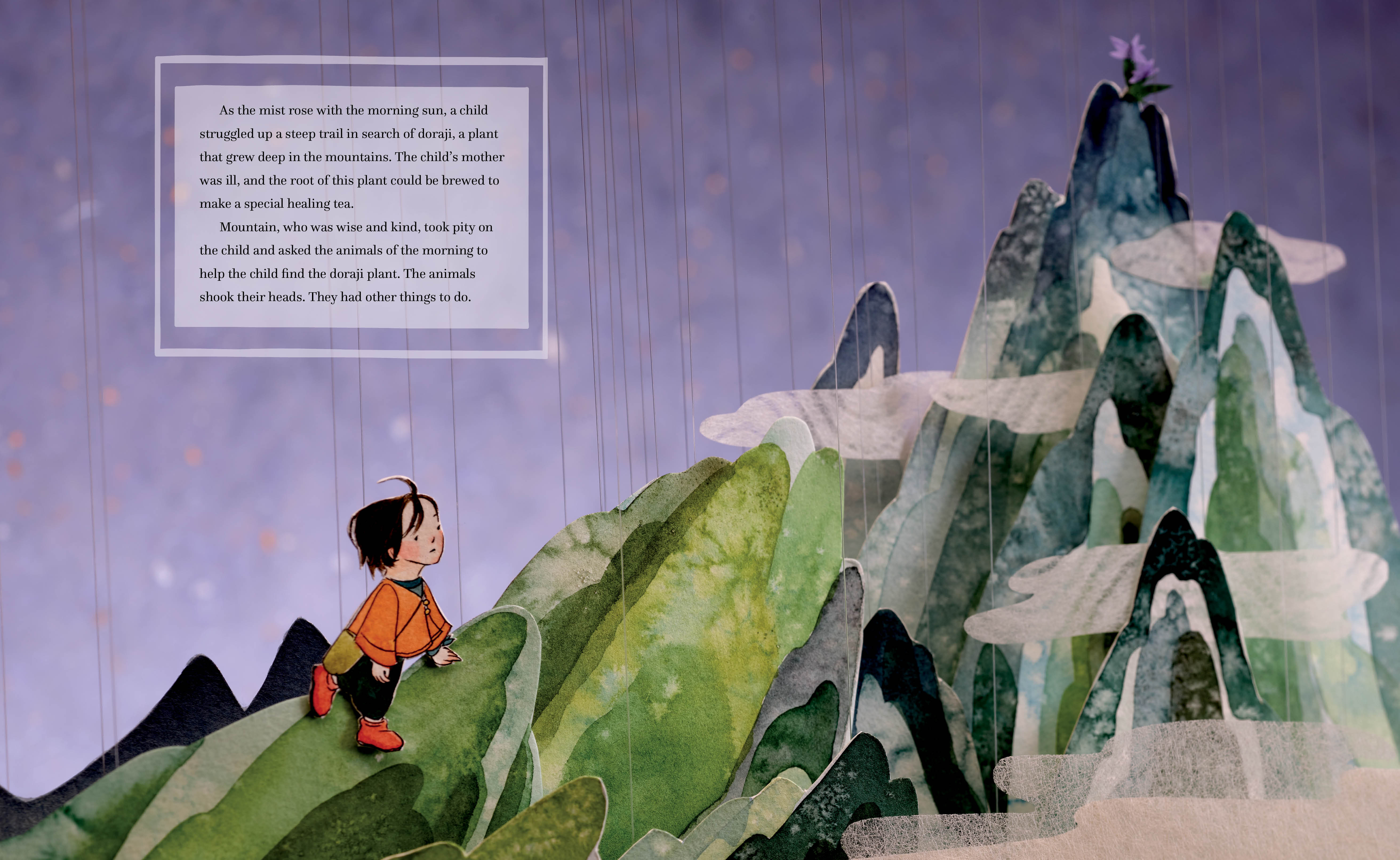 Her mother tells her a tale from her childhood based on the traditional Korean practice of timekeeping, where the 12 animals of the zodiac are assigned to 2-hour sections of the 24-hour clock. Told from the point of view of a mountain, the story follows a child as they climb the mountainside in search of a plant to heal their ailing mother. The climb is steep, the path wild and the way difficult. The mountain watches the child struggle and calls on the animals that live on the mountainside to help the child, but as sunlight turns to moonlight, each animal claims to be too busy. Ultimately, Once Upon an Hour is a story about determination and teamwork that shows young readers the importance of helping others.