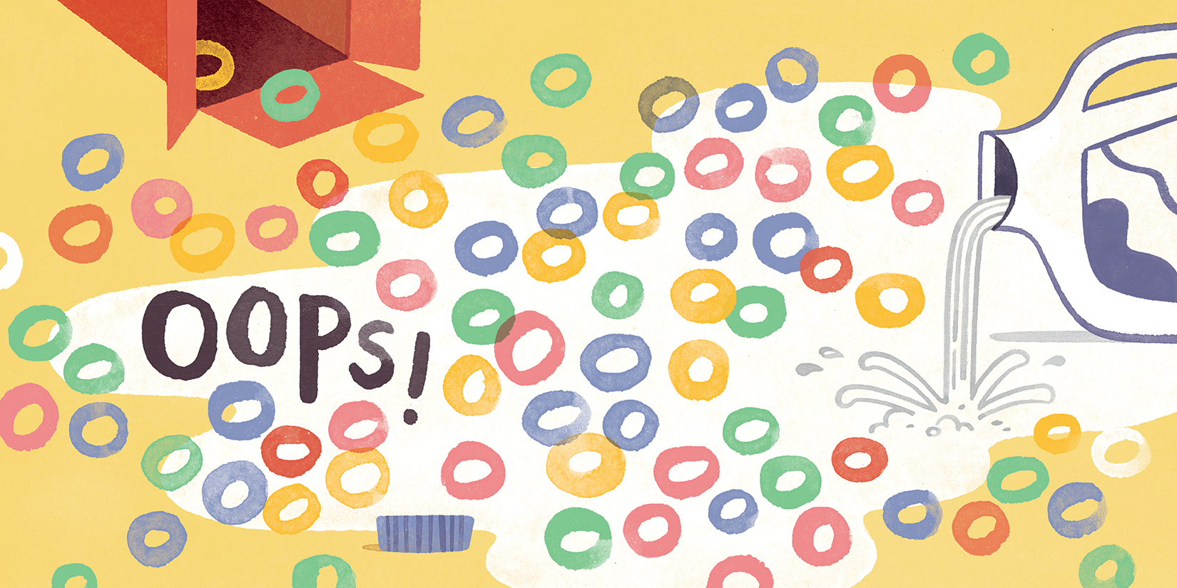 What happens when you knock on an egg? Flip a plate of sloppy spaghetti? Clap your hands near a tree full of birds?...OOPS! When little ones might otherwise be encouraged to be careful or quiet, in Oops! they are invited to explore cause and effect in mischievous scenarios without the real-life consequences. The results are often surprising and always fun!