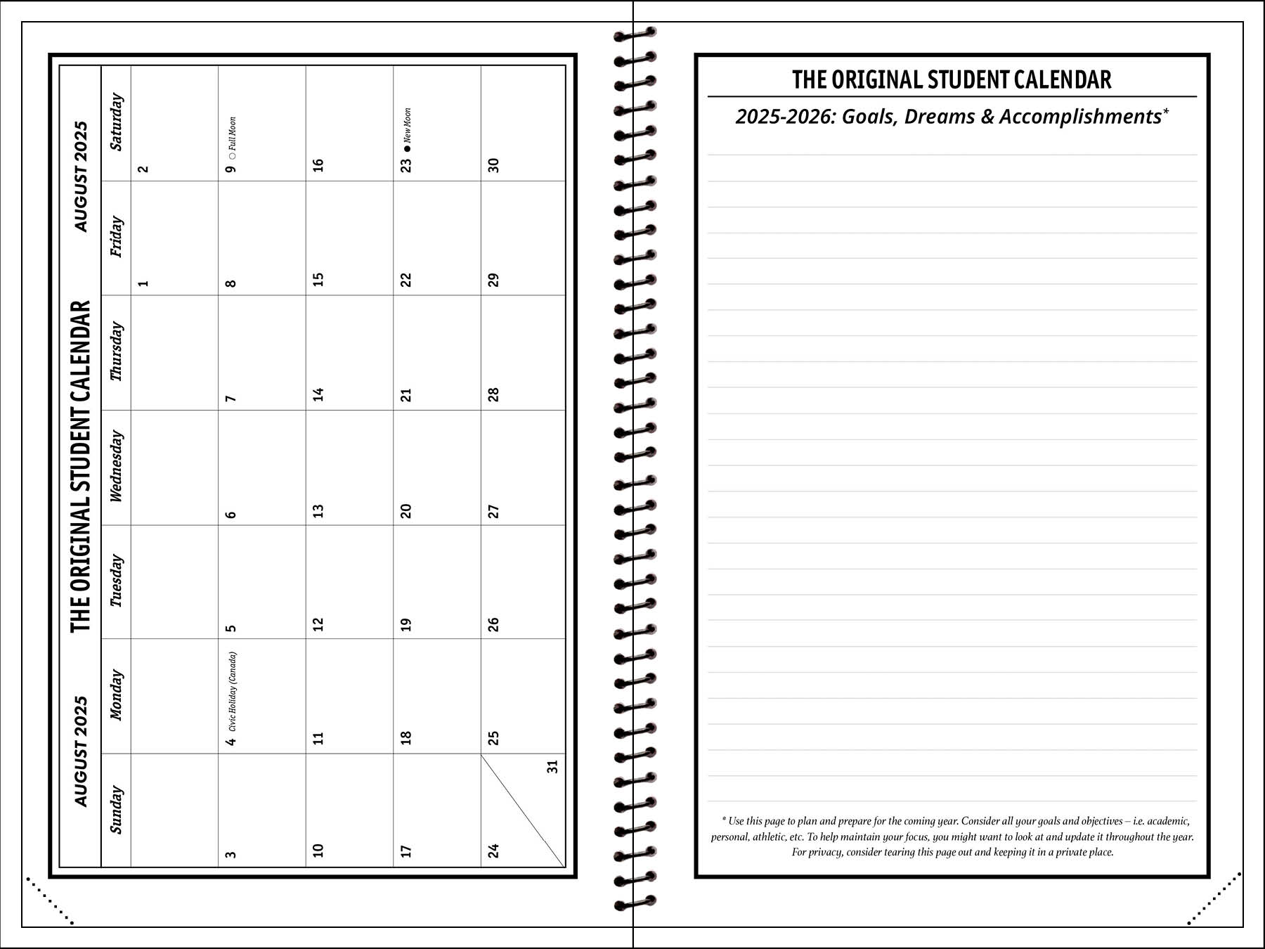 - Lots of room to write in each day.