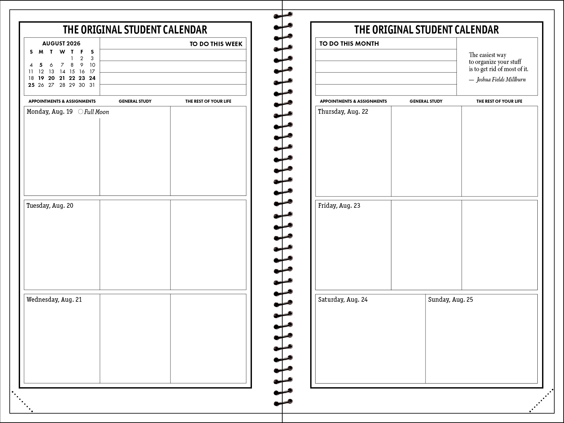 - SPACIOUS DESIGN—lots of room to write in each day, with three columns for easy organization: Appointments and Assignments, General Study and The Rest of Your Life to easily balance study and other commitments.