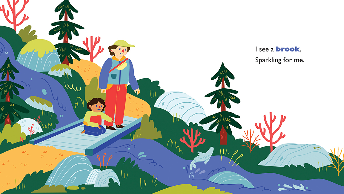 “Out on the trail, and what do I see?” This gently rhyming picture book takes young ones on a walk through nature—discovering the ocean, a brook, clouds and more—and encouraging engagement with the world around them. Full-spread wordless pictures offer an opportunity for children to look further and discover more. Molly Margaret’s charming illustrations are inspired by the beautiful landscape along the East Coast trail near her home. The author includes a brief afterword with tips for adult readers about how to interact with children to help increase their literacy and curiosity.