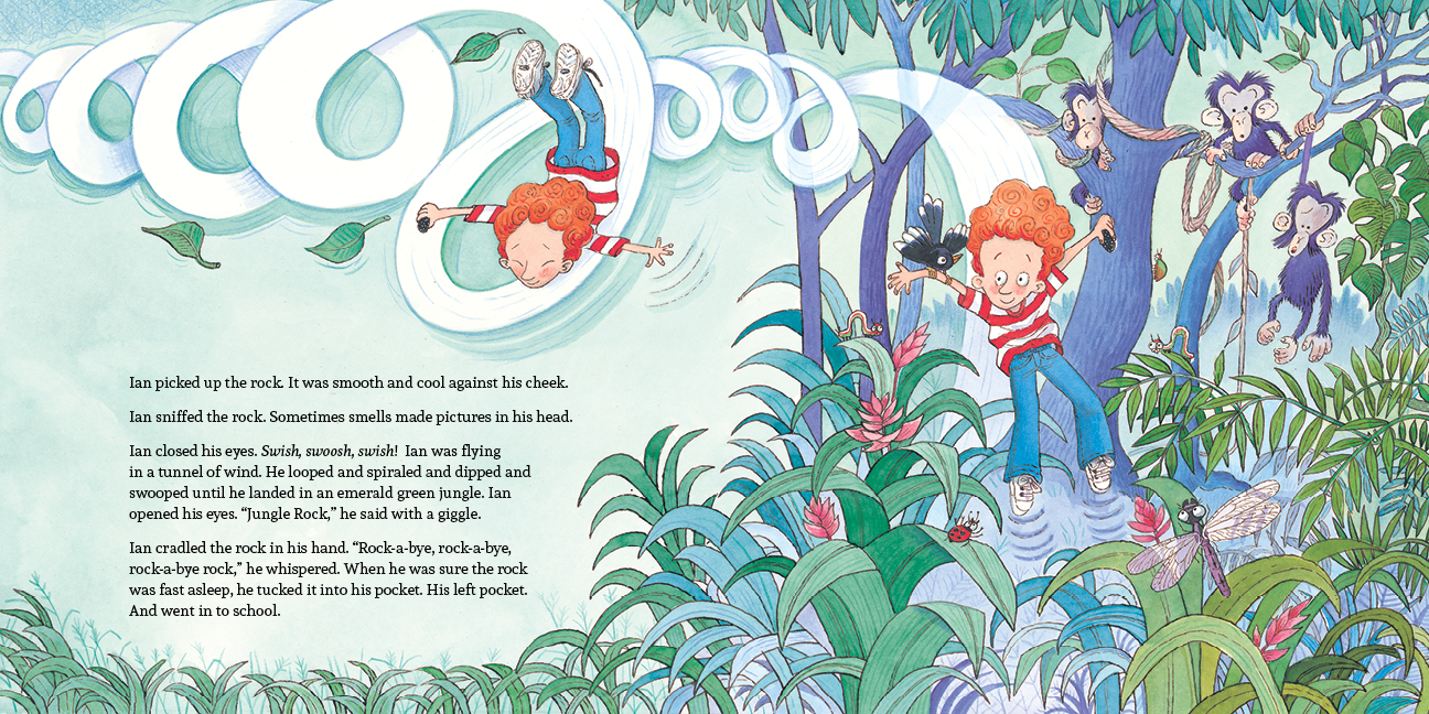 Every day he dreads going to school. Then he finds a rock, a rock that fits perfectly in his pocket, a rock that touches all his senses and whisks him away into a whole other world. From then on, as long as he has a rock in his pocket, Ian Goobie can manage his daily challenges. That is, until he stuffs so many rocks in his pockets that his pants fall down right outside in the schoolyard, in front of all his classmates. This might be the biggest challenge Ian Goobie has had to face yet.