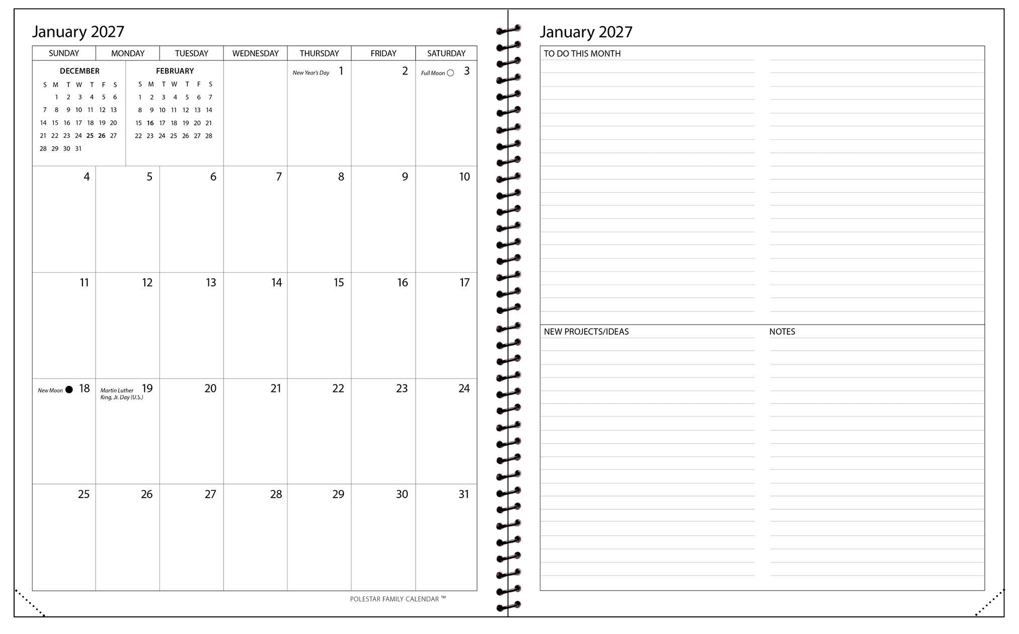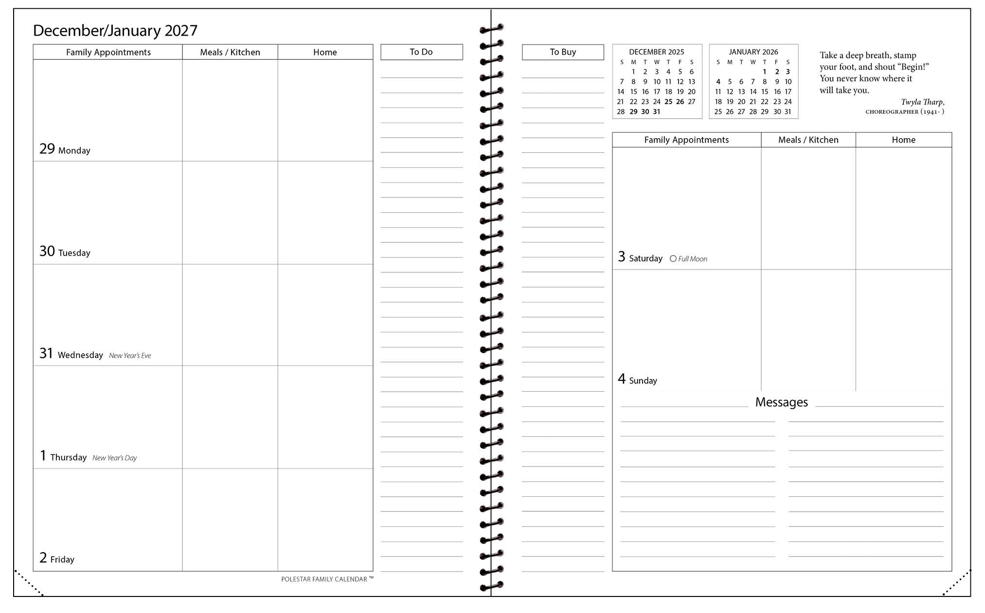 - LISTS—ample space for To-Do and To-Buy lists, family profiles, meal planning, storage records, dates to remember and items loaned and borrowed.