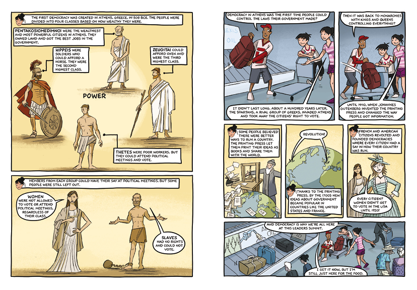 A swarm of politicians, lobbyists, corporate bosses and protestors have all converged on the summit to get their messages heard. A tragic accident just hours before their parents' presentation plunges the kids into their biggest mystery yet and sets them on the trail of a murderer bent on stopping their parents' controversial message from being heard. It's a fight against the planet's power players as the kids dive into the world of politics, uncovering how government works, the history of democracy, the influence of lobbyists and corporations on politicians and the potential of civil society to change it all.