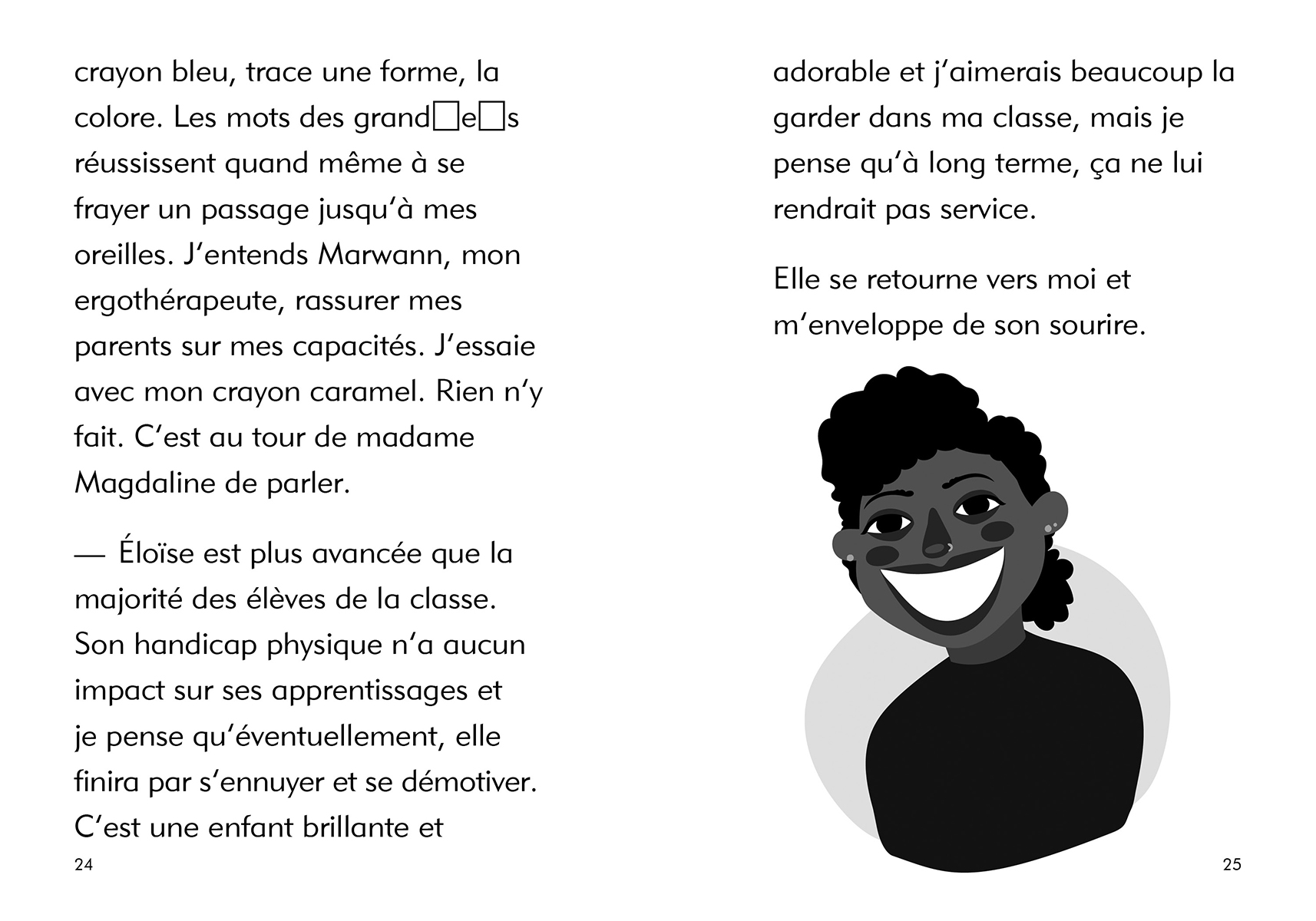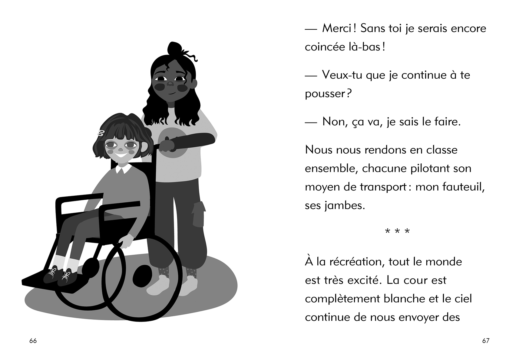 Éloïse change d’école, mais pour elle qui est en fauteuil roulant, passer d’une école spécialisée à une école de quartier n’est pas si simple. Puisqu’elle peut se déplacer, manger, s’habiller et apprendre aussi bien que les autres élèves, ce n’est pas ça qui présente un réel défi ; c’est l’attitude de ceux qui veulent tout faire à sa place, pour que ce soit plus facile pour elle. Éloïse devra prouver qu’elle aussi, elle peut!