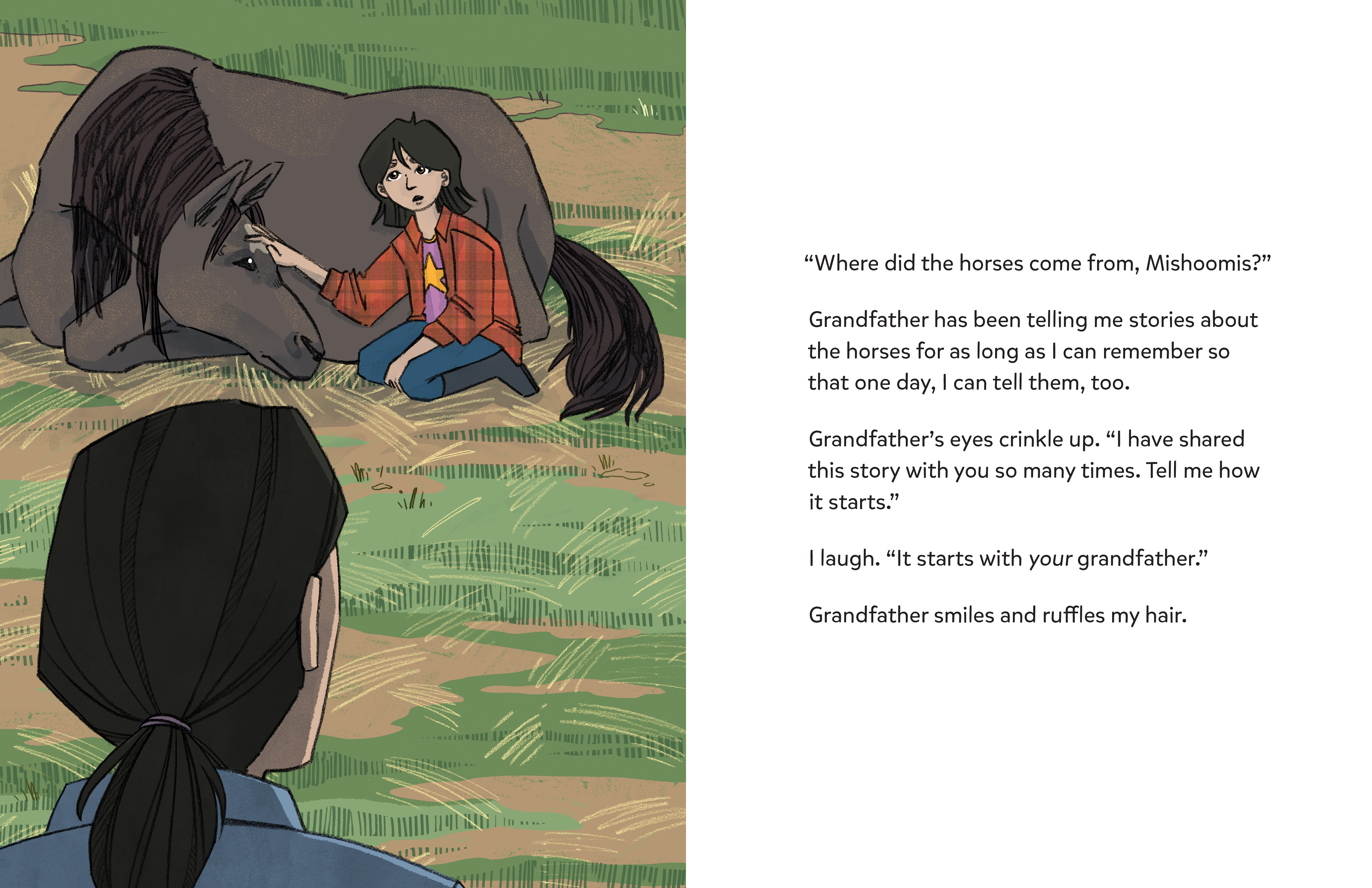 As they await the birth of a new foal, a man teaches his grandchild about the Ojibwe Horses that used to roam the forests of northwestern Ontario. The horses once ran wild and free, but when Grandfather was a boy, they almost disappeared. Now he is the caretaker of his own small herd, keeping the breed alive for future generations and teaching his grandchild about the loving bond between human and animals.
