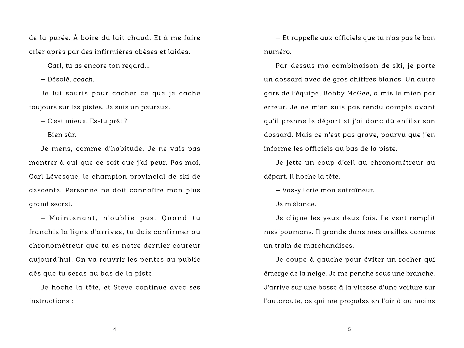 Des empreintes à proximité indiquent que le responsable de ce sabotage serait un planchiste. Carl apprend seul à faire de la planche à neige pour trouver le coupable. Quand il découvre que quelqu’un vole de l’équipement au Mont Charlevoix et que la fille qu’il vient de rencontrer pourrait être impliquée, il doit surmonter ses peurs et se lance dans une course effrénée en planche à neige pour se réfugier en sécurité.