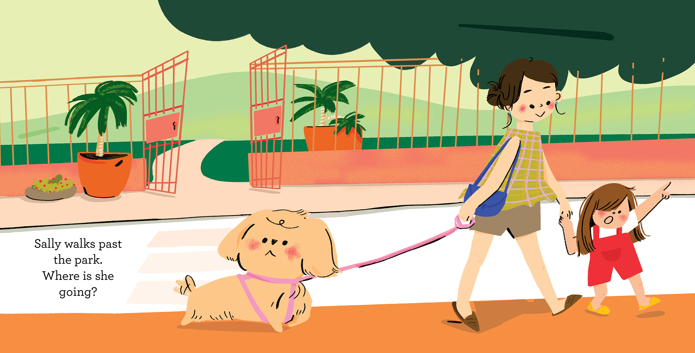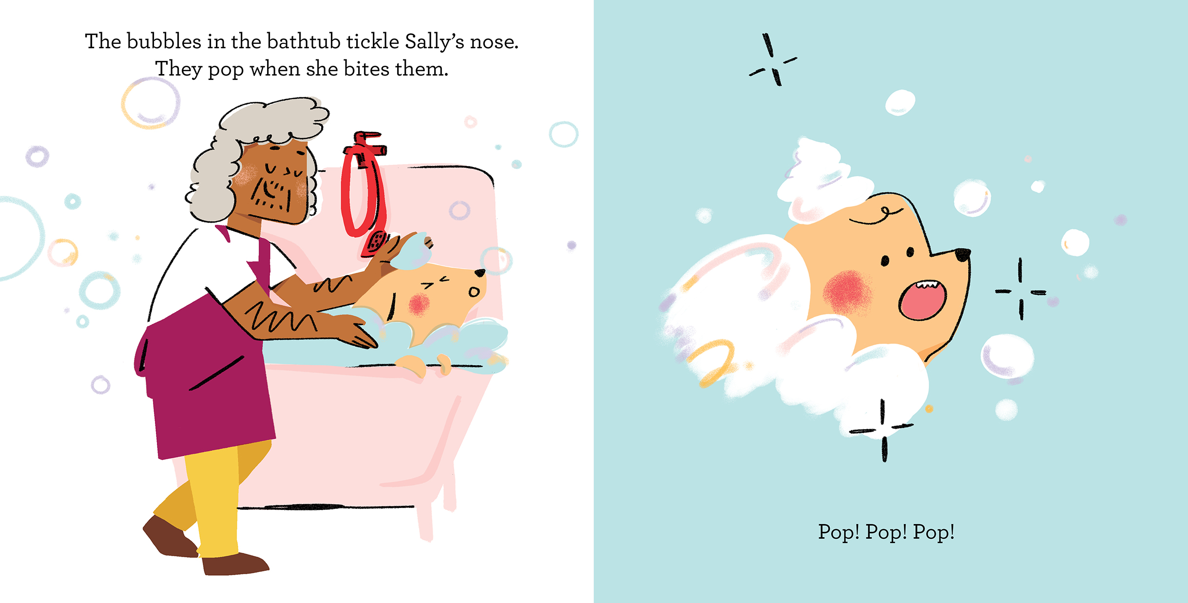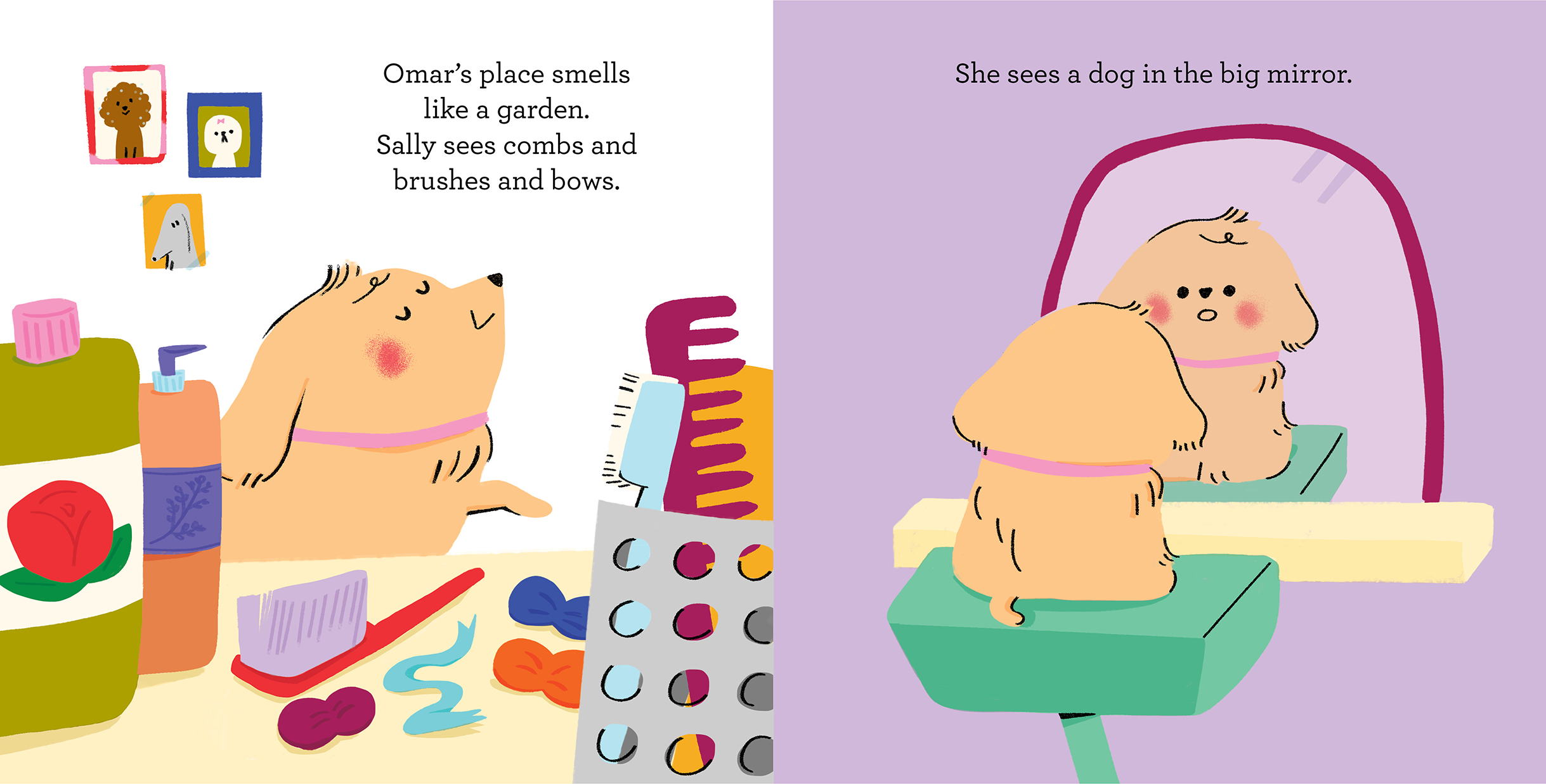 Lovable pup Sally is looking a little shaggy, so her owners are taking her to the groomer. It smells like a garden and Sally sees brushes and bows galore. Then it's time for a bath. Once she's squeaky clean and blow-dried, Sally gets brushed, snipped and clipped. When her owners arrive—surprise!—everyone has fancy new hairdos!