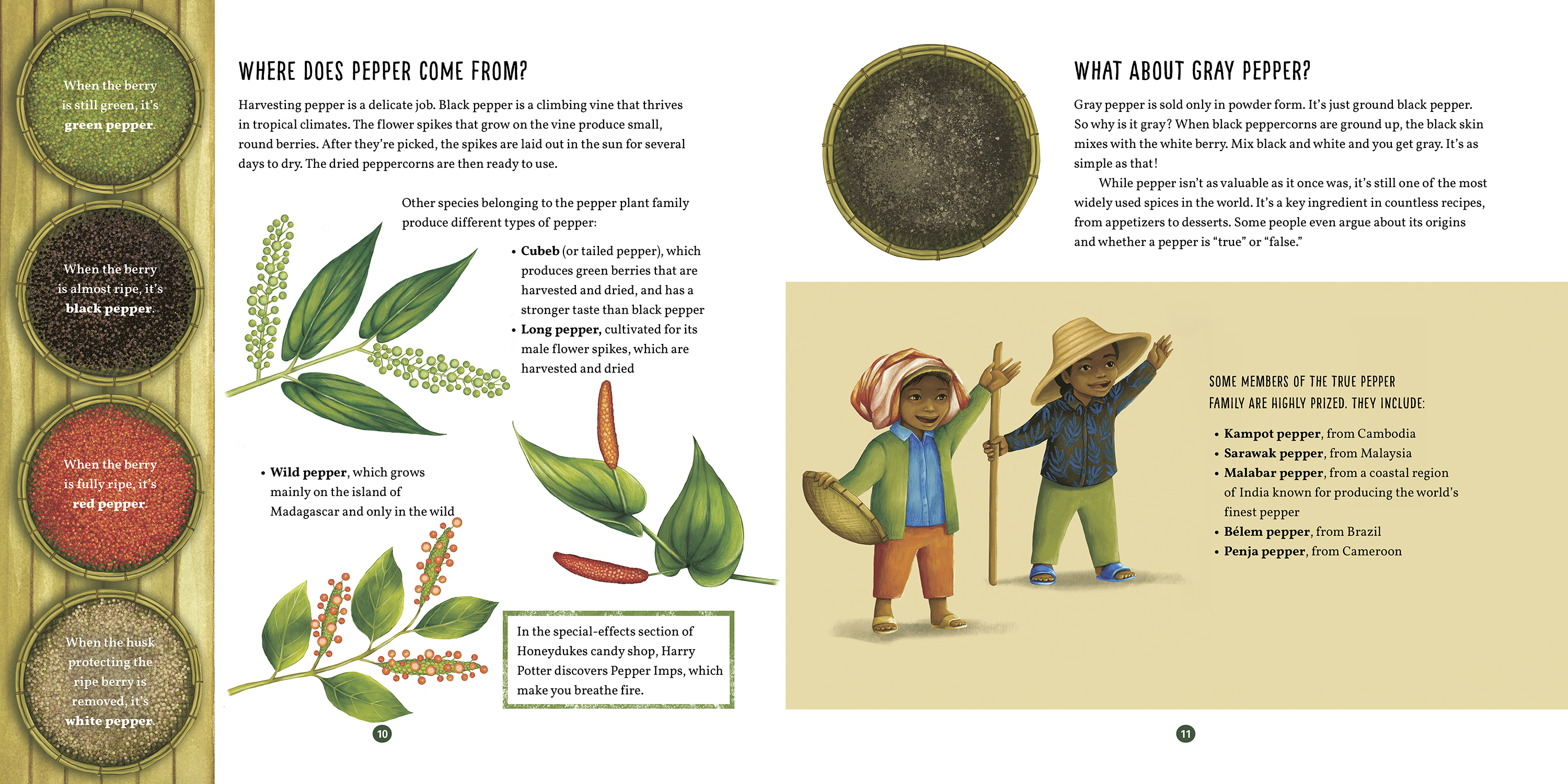 In Salt, Pepper, Season, Spice, discover where our favorite spices, condiments and confections come from and how they're grown, harvested and prepared. Find out how they're used to enhance and create flavors in the foods we know and love today. A tasty read guaranteed to get your mouth watering!