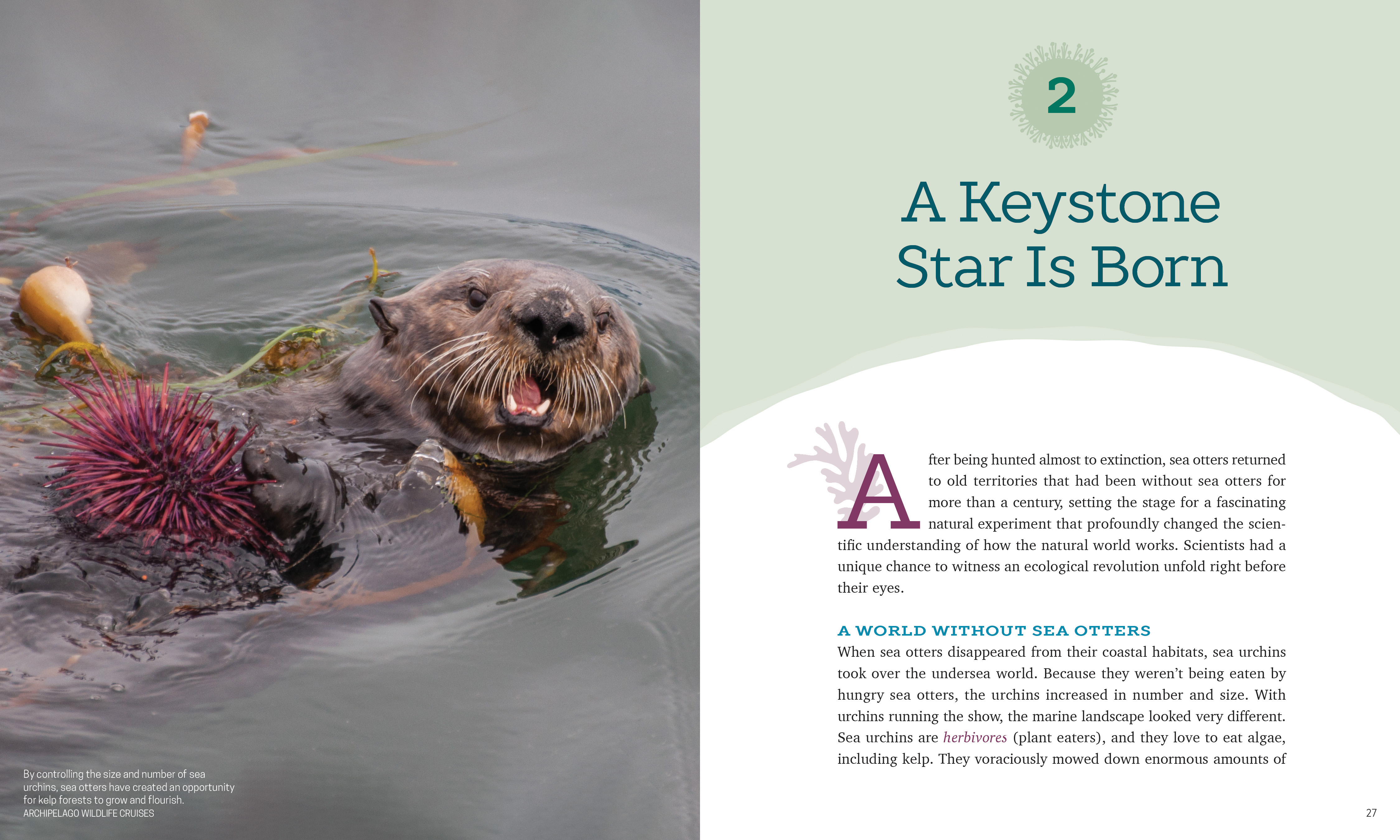 Today they’re slowly coming back from the brink, and scientists are learning more about their pivotal role as one of nature’s keystone species. This book looks at the history, biology, behavior and uncertain future of sea otters. Author and photojournalist Isabelle Groc takes us into the field: watching sea otter rafts off the British Columbia coast from a kayak, exploring what makes their fur coats so special, understanding how their voracious appetites are helping kelp forests thrive and, ultimately, learning how sea otters are leaving their mark (or paws) on every part of the ecosystem. They might be one of the most adorable creatures in the ocean, but kids will discover how their survival is key to a rich, complex and connected ecosystem.