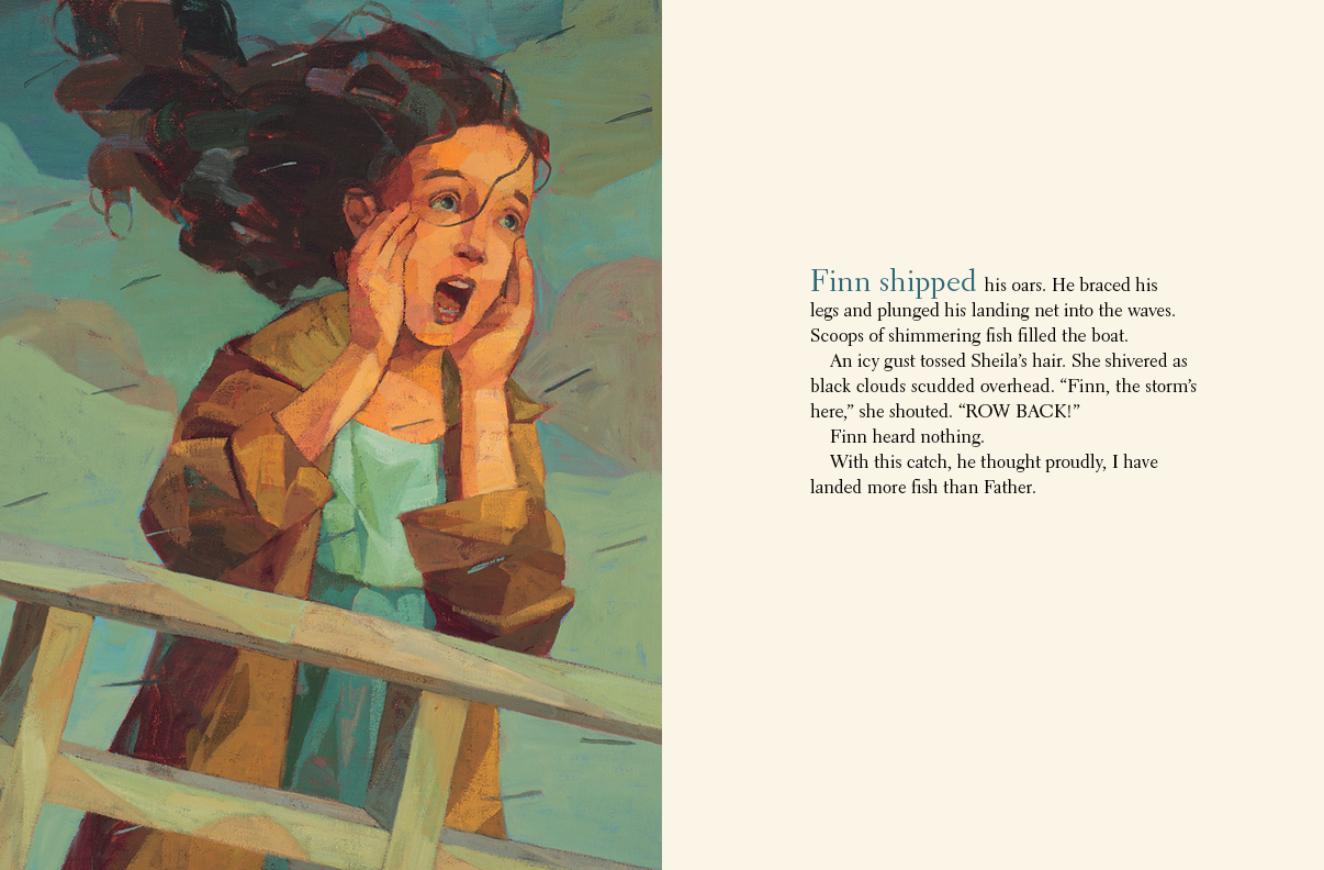 Finn loves to swim with the seals in a secret cove. He arrives at the cove one day and rescues a young seal tangled in netting. Finn wishes the seal could live on land. That night the seals sing. When Sheila, a mysterious girl no one has ever seen before, appears on the cannery docks, the fisher folk are uneasy. They believe the newcomer is a magical selkie, a shape changer.