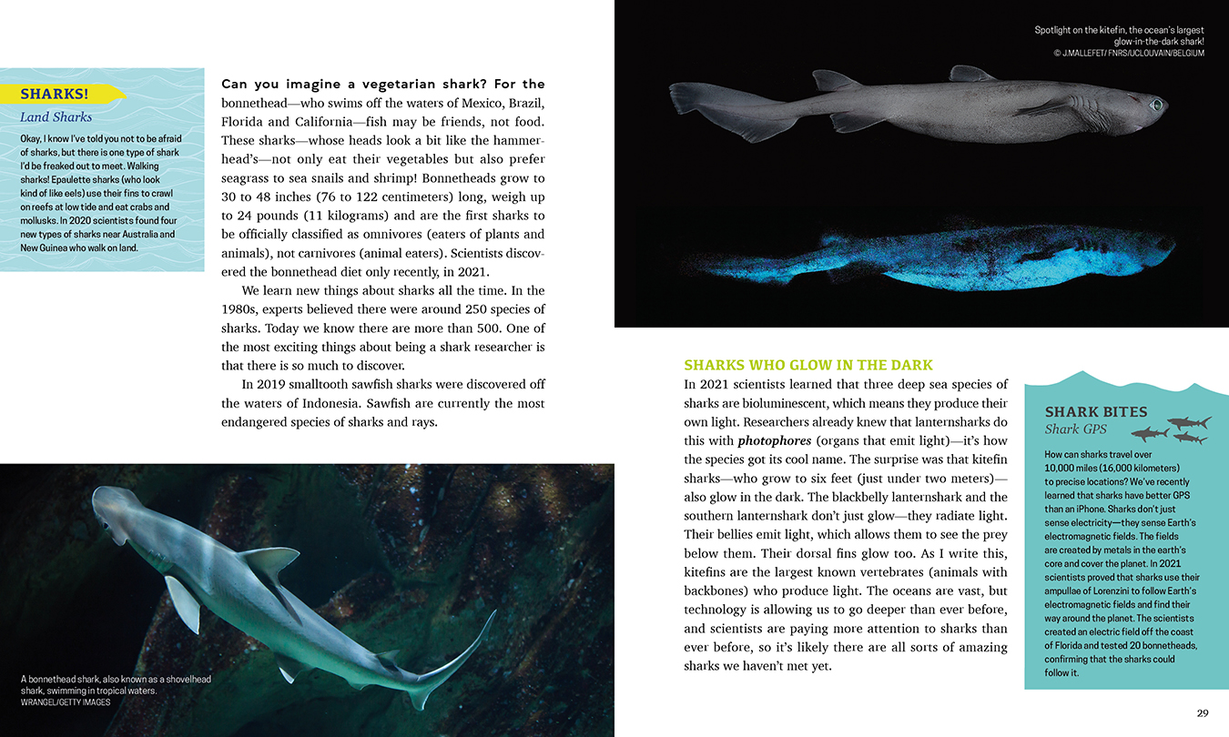 Did you know that some sharks have friends? Or that there are sharks small enough to swim in a soup can? There are sharks who can walk on land and others who make their own light. There are ancient sharks who lived in the oceans millions of years ago, and new species who have just been discovered. Most importantly, did you know that most sharks are fighting for their survival?