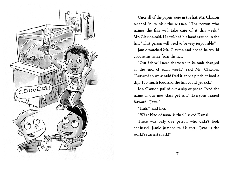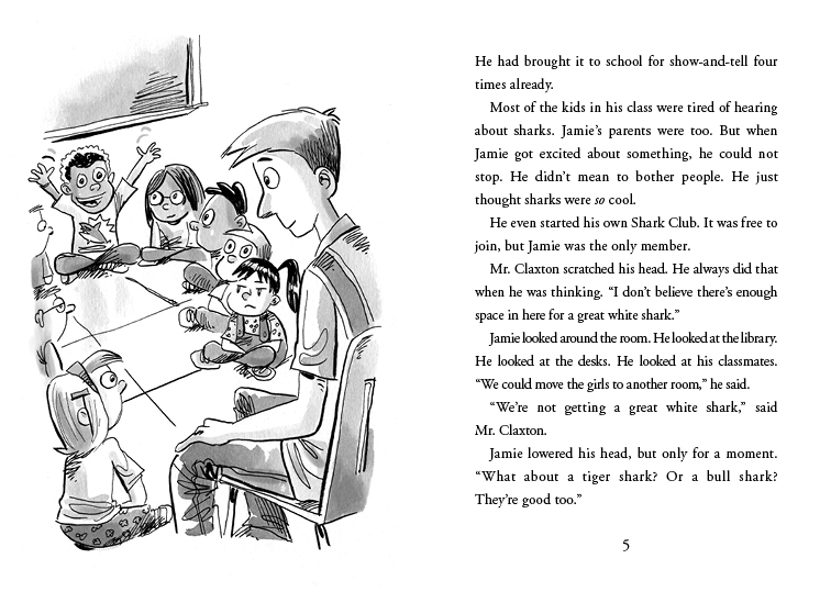 He reads about them. He talks about them. Sometimes he even pretends to be a shark. Too bad no one else wants to join his Shark Club. His peers and parents are quickly growing tired of his current obsession. When Jamie's teacher, Mr. Claxton, brings in a new class pet, Jamie is put in charge. But Jamie has an accident while feeding it, and everyone becomes upset with him. He needs to find a way to make things right. In the end, he comes up with a solution that pleases both his teacher and classmates, a solution that also gives Jamie an opportunity to share his newest obsession—lizards.