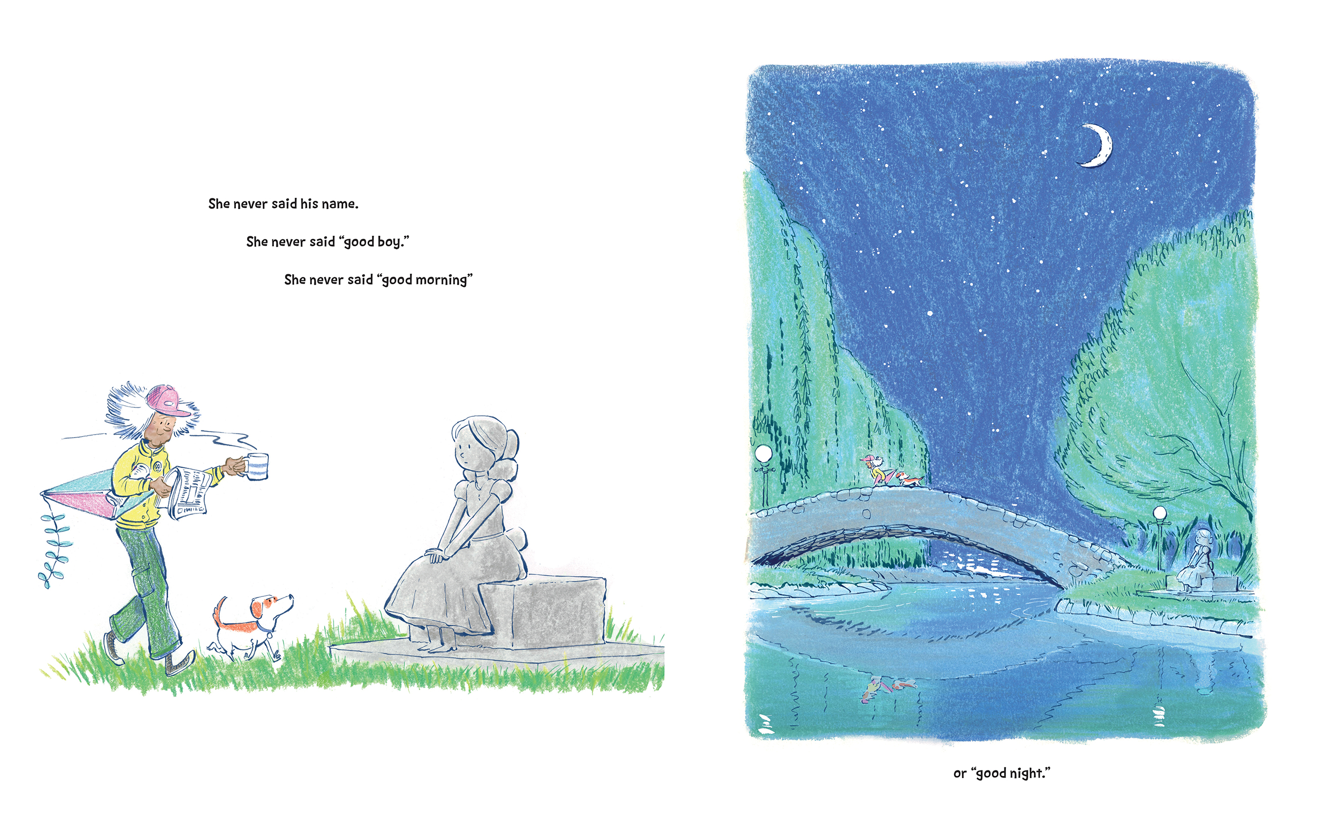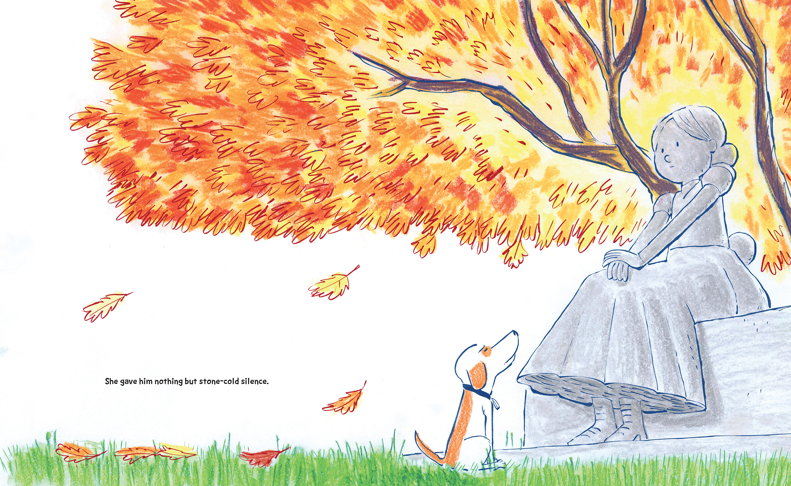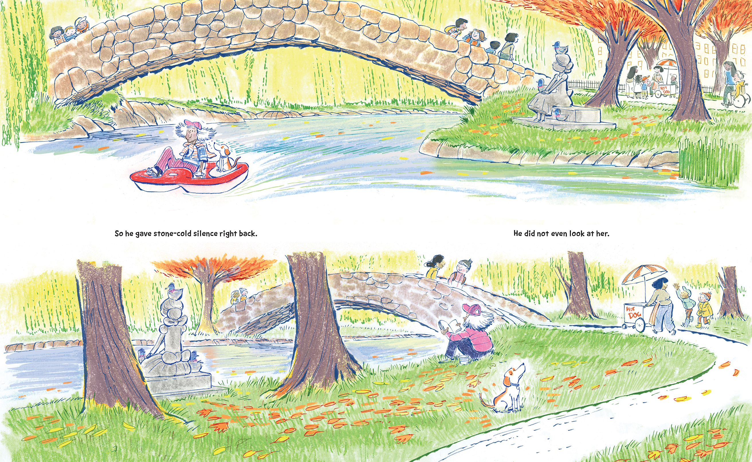 Could this be a new friend? But when she stays stone-cold silent, he decides to ignore her right back. Besides, she doesn’t play fetch or give pets or offer treats. What’s the point?