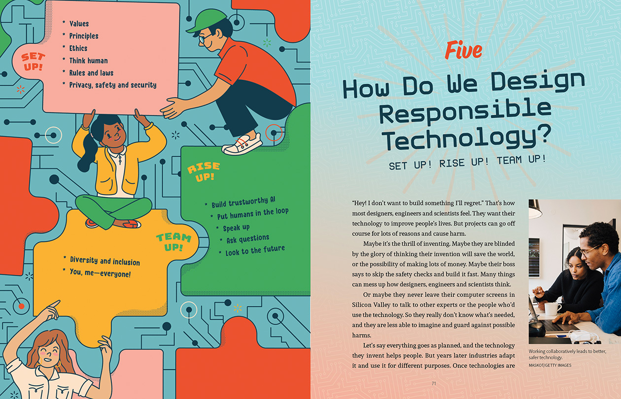 But what if super strength results in endless work? What if hackers can read our thoughts? What if living in a virtual world affects our humanity? The book asks readers to question the pros and cons of technology and consider if innovation can go too far. Meet the inventors, designers, engineers, scientists and young people navigating the next tech frontier.