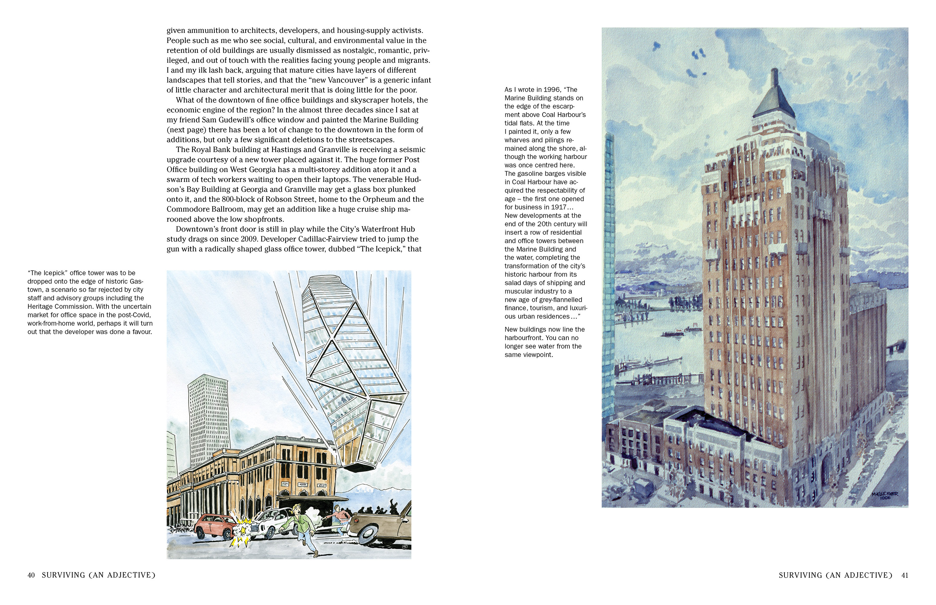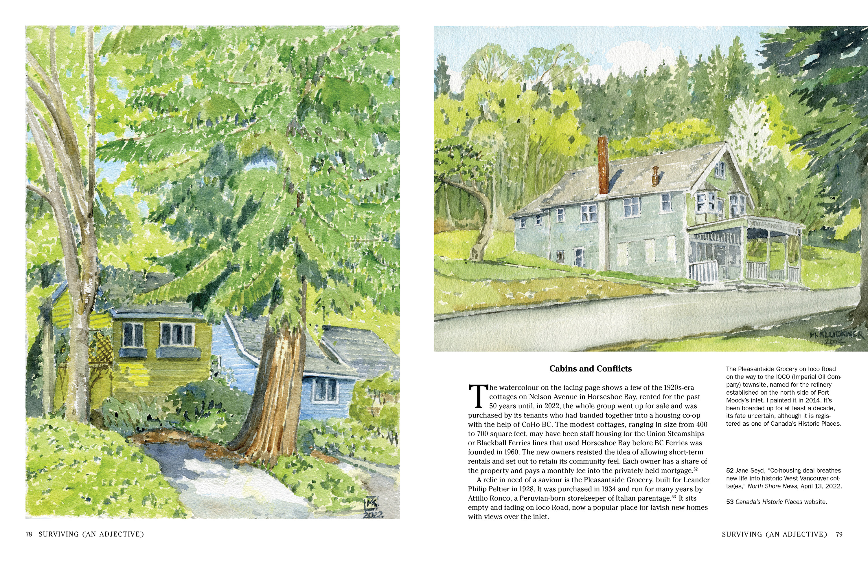 This book asks and answers two questions. What’s survived in Vancouver? And how do you survive in Vancouver? From historic neighbourhoods under threat from land speculation to the debates about densifying and making room, Michael Kluckner explores the contested space of Metro Vancouver, using his classic watercolour images from the past 25 years. Forty years after his Vancouver The Way It Was book, Surviving Vancouver concludes his study of the city.