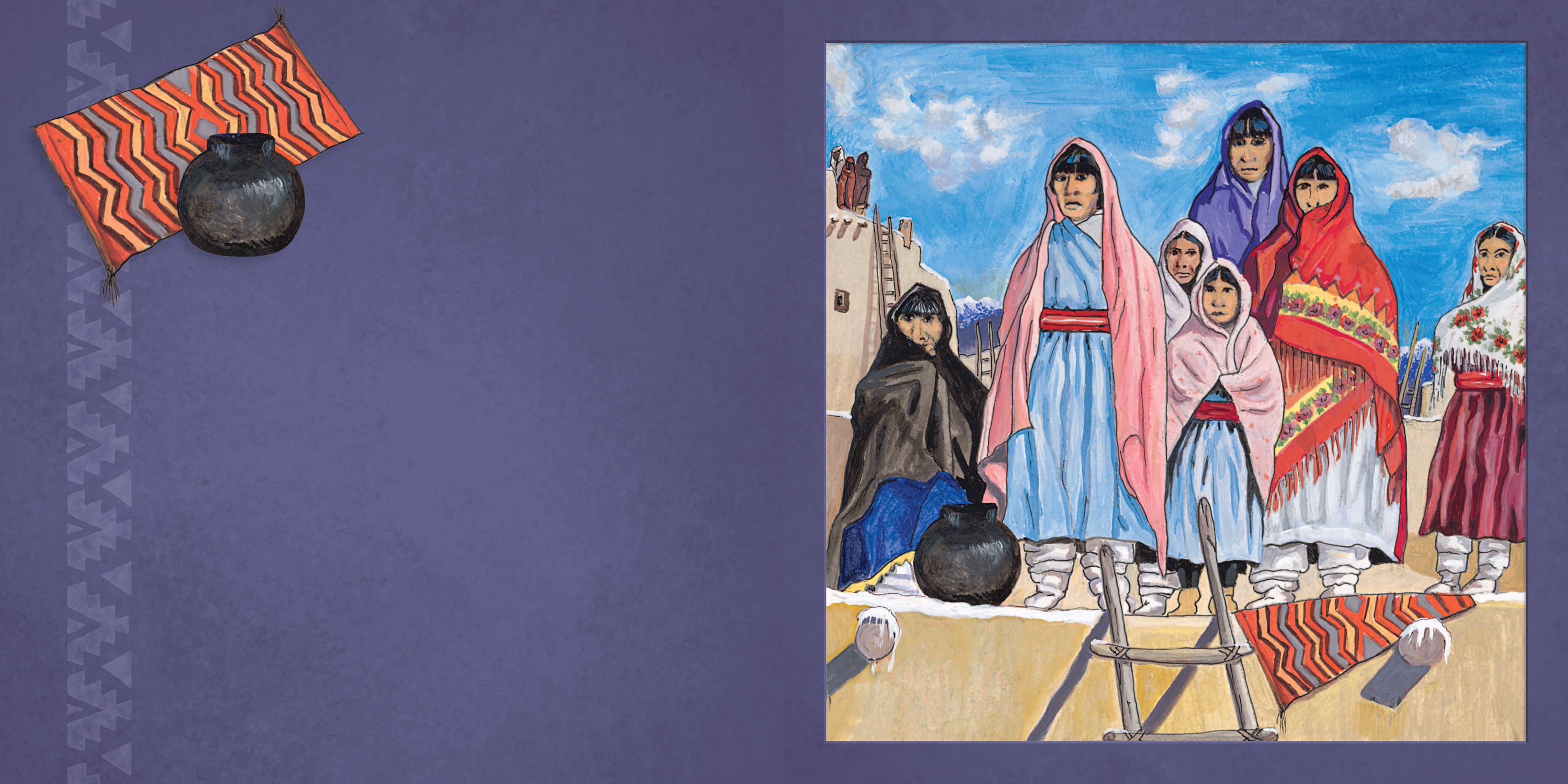 The delightful board books, written without text, were created by the Taos Pueblo’s Tiwa Language Program to preserve the Tiwa culture and revitalize the unwritten Tiwa language by teaching it to younger generations. Many other Indigenous languages also need to be revitalized, so it is the hope of the Taos Pueblo’s Tiwa Language Program that other American Indian nations will find the books useful to teach their languages to their children. The beautiful, hand-drawn illustrations will also educate young children about the four seasons of the year. All proceeds of the book support the Taos Pueblo’s Tiwa Language Program.