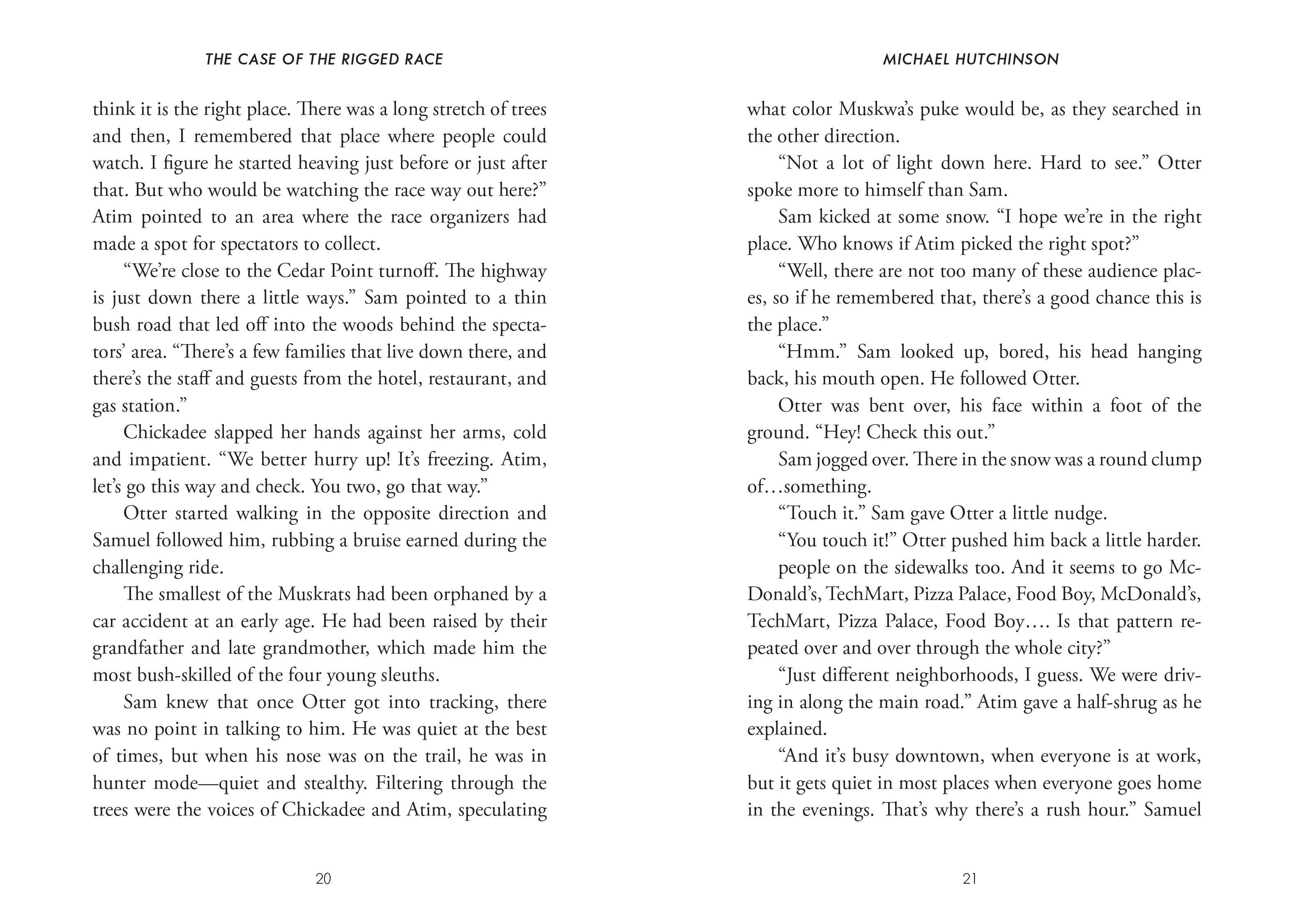 Between mysterious strangers seen lurking by the trail and a loud group of animal rights protestors, the Muskrats have a lot of suspects. Despite the chill of winter, the case is heating up for Sam, Otter, Atim, and Chickadee!